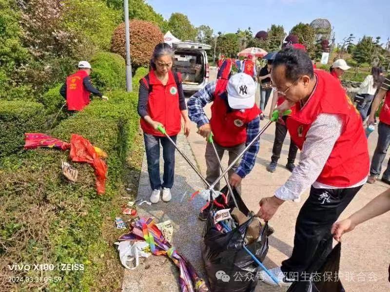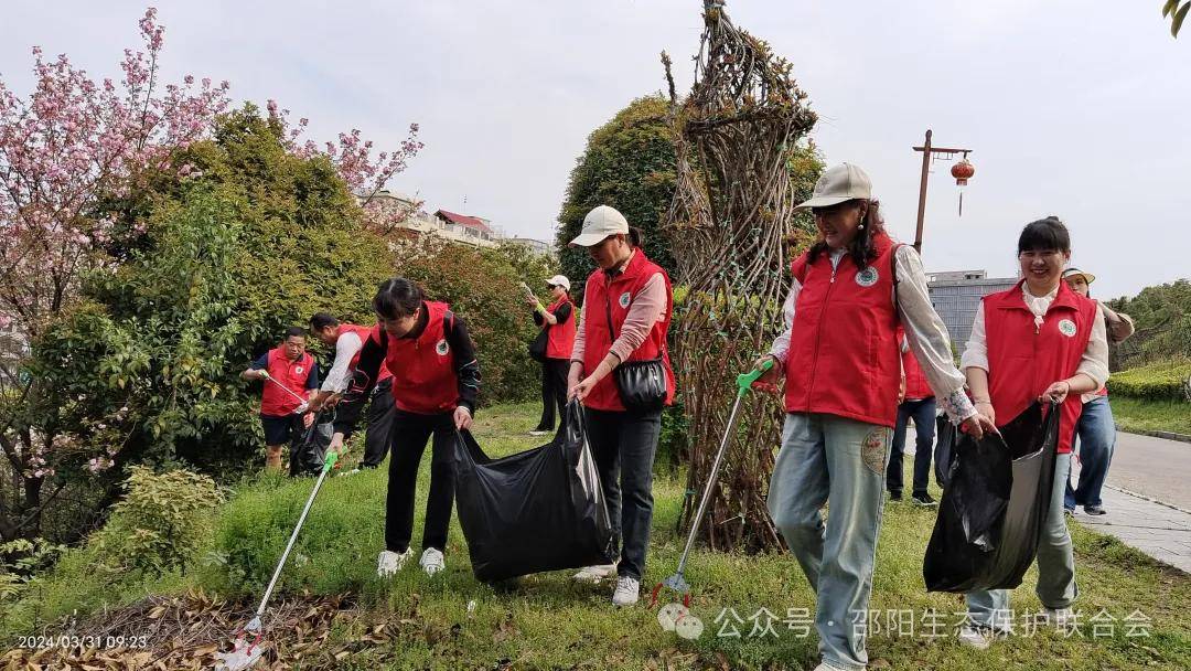 3月31日上午,堪比三伏天的春日阳光,邵阳市生态环境保护志愿者联合会44名志愿者,一手提着垃圾袋,一手拿着长柄夹,穿行在紫薇博览园道路旁、花树下,捡拾游人丢弃的塑料袋、矿泉水瓶、一次性饭盒,不放过任何一片白色垃圾。