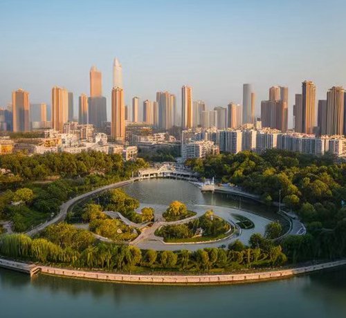 合肥,因有巢湖水系的滋养,使得城市中的二十多个公园都拥有造型别致的湖泊或池塘,它们是公园的重要组成部分,也是人们喜爱的景点之一。诸如,天鹅湖公园湖面是一只大大的天鹅;植物园的水面像一枚巨大的龟背竹叶子,菱湖公园的水面侧呈出巨型菱角状,等等。水面上倒映着岸边的绿树、繁花、楼群,仿佛置身于童话世界中,让人不禁为之惊叹。而周围种满了各种各样的乔木、灌木和花卉,又在很是恰当的位置留出翠绿的草坪、观景台和休息亭,供人们亲近自然,观赏的水鸟和鱼类觅食、嬉戏,尽情享受假日的惬意和舒适。