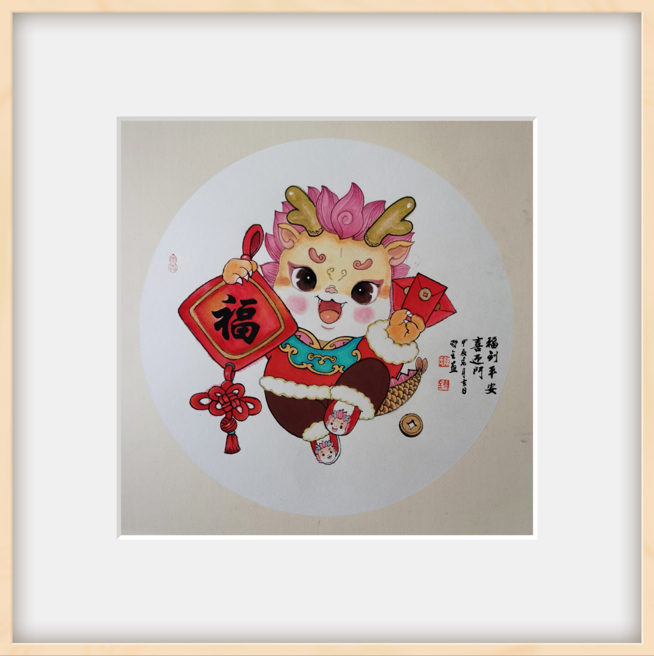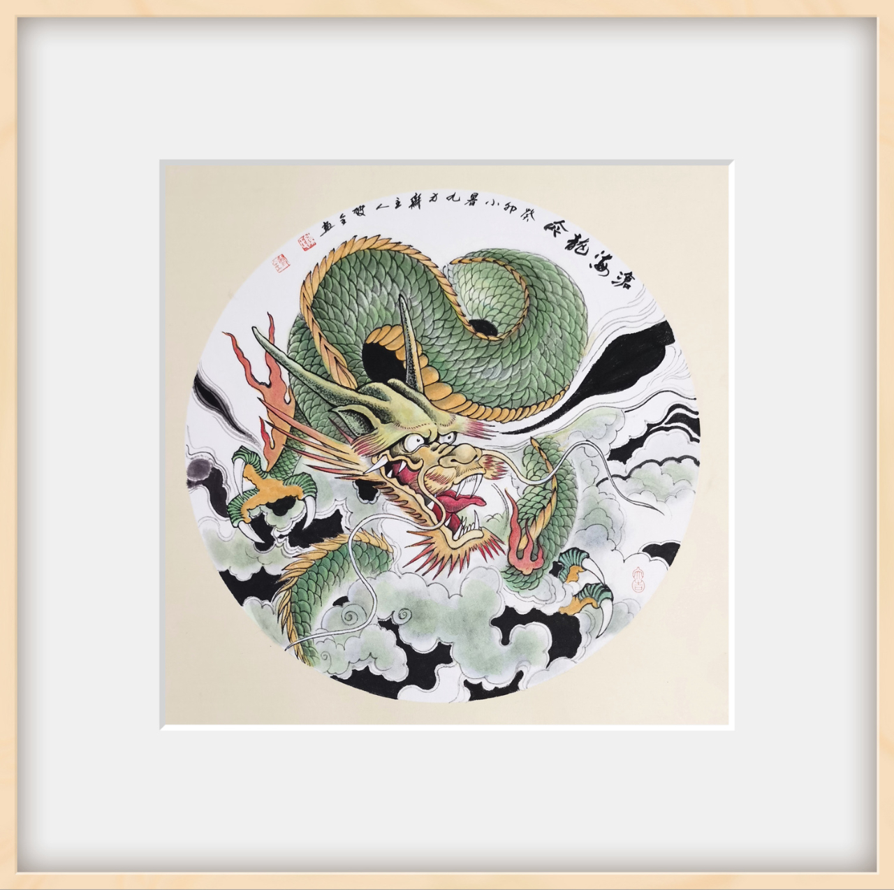 瞧这幅《龙行天下》,一条巨龙从天而降,气势磅礴,令人叹为观止。画家巧妙地运用墨色浓淡,将龙身的肌肉纹理刻画得栩栩如生,仿佛能感受到那强大的力量与生命力。神龙的眼睛更是传神至极,仿佛能看穿一切虚妄,洞察世间真理。