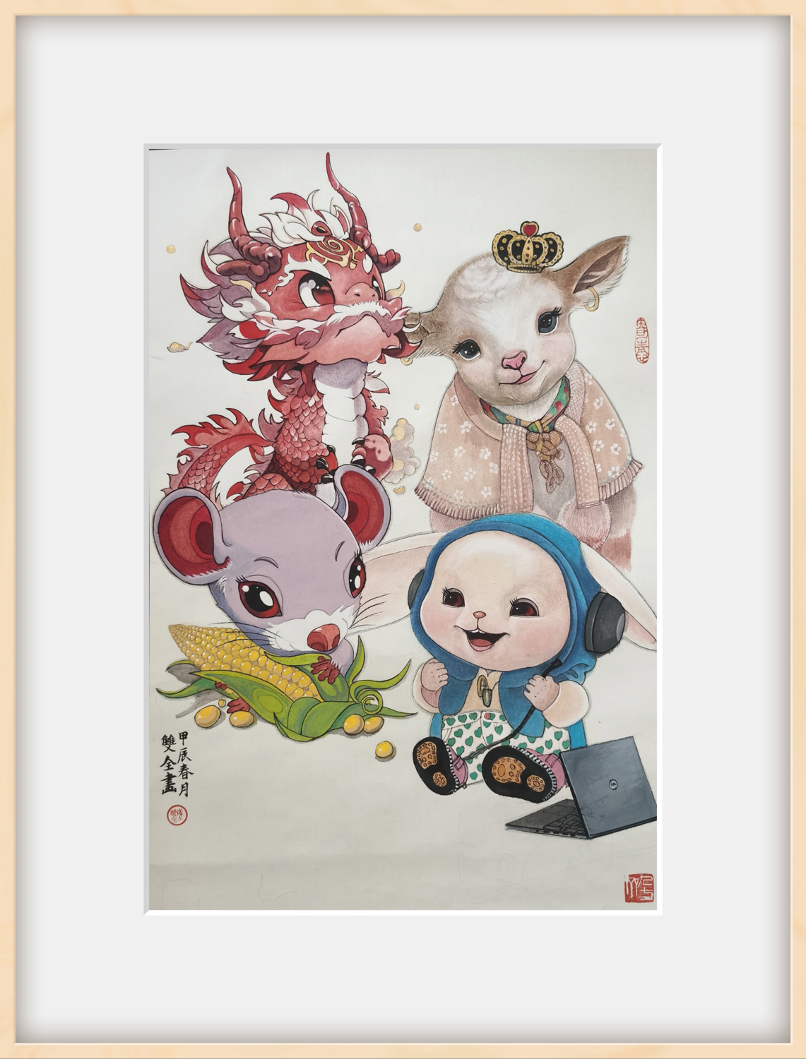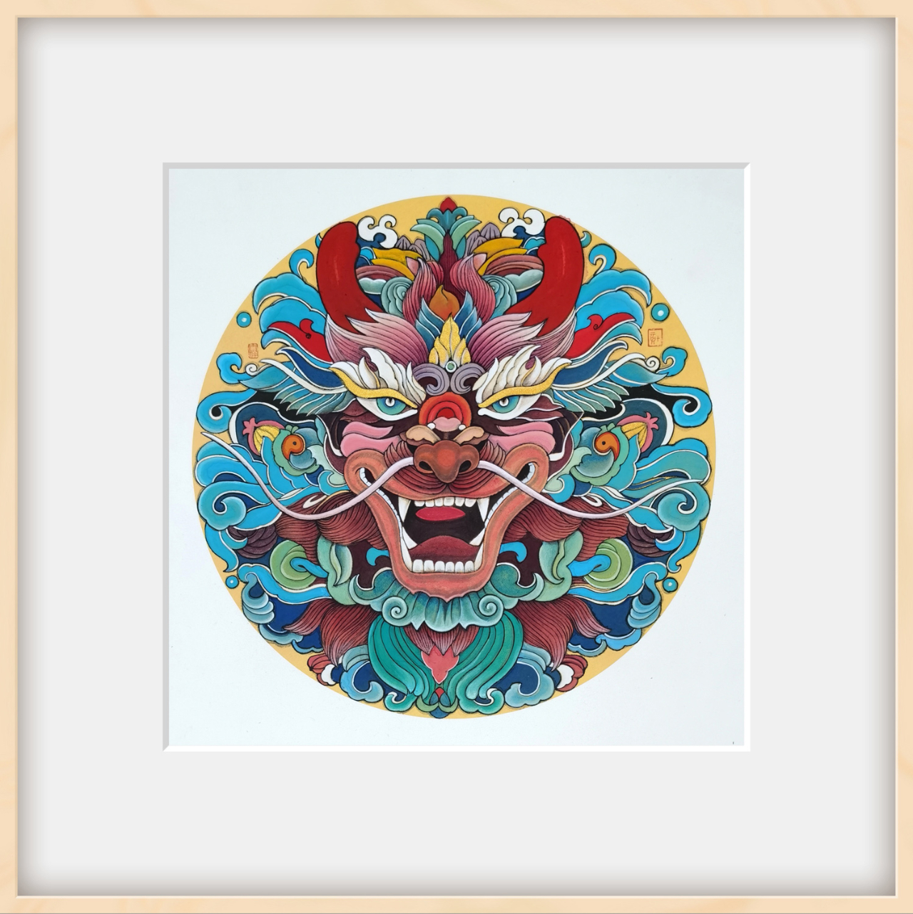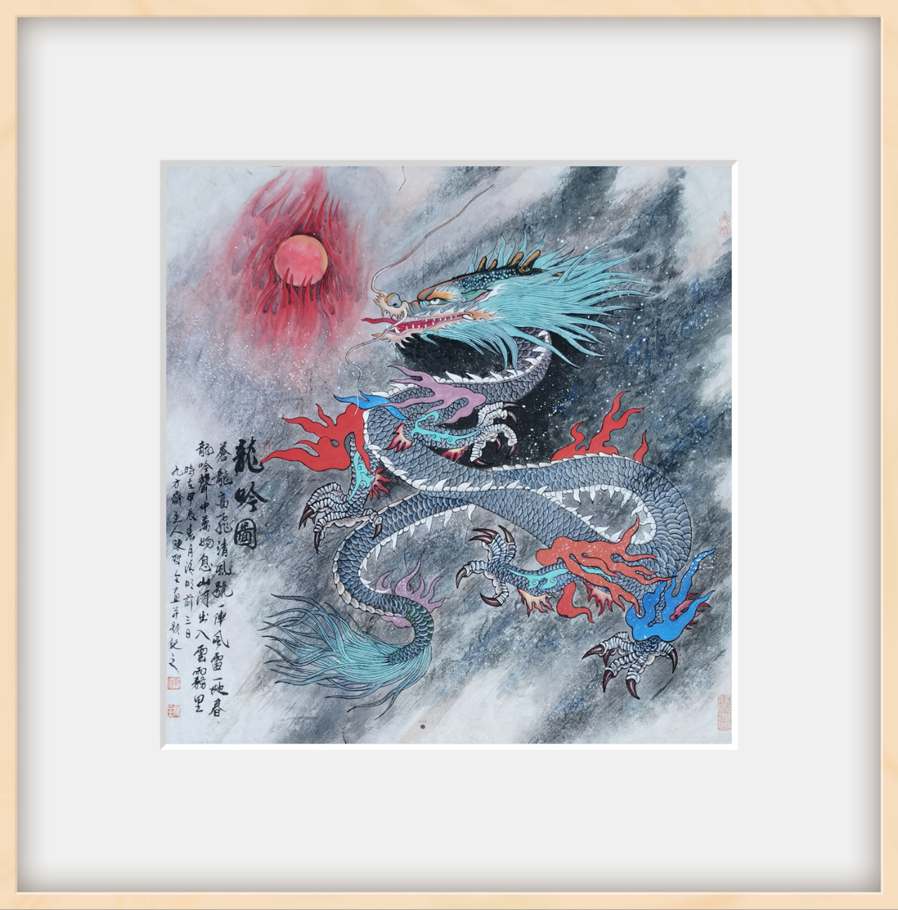 再看那幅《龙吟图》,神龙在云海中翻腾跳跃,身姿矫健,气势非凡。画家以细腻的笔触勾勒出云雾缭绕的背景,营造出一种神秘而梦幻的氛围。神龙在云海中穿梭自如,仿佛在与天地共舞,展现出一种超凡脱俗的美感。