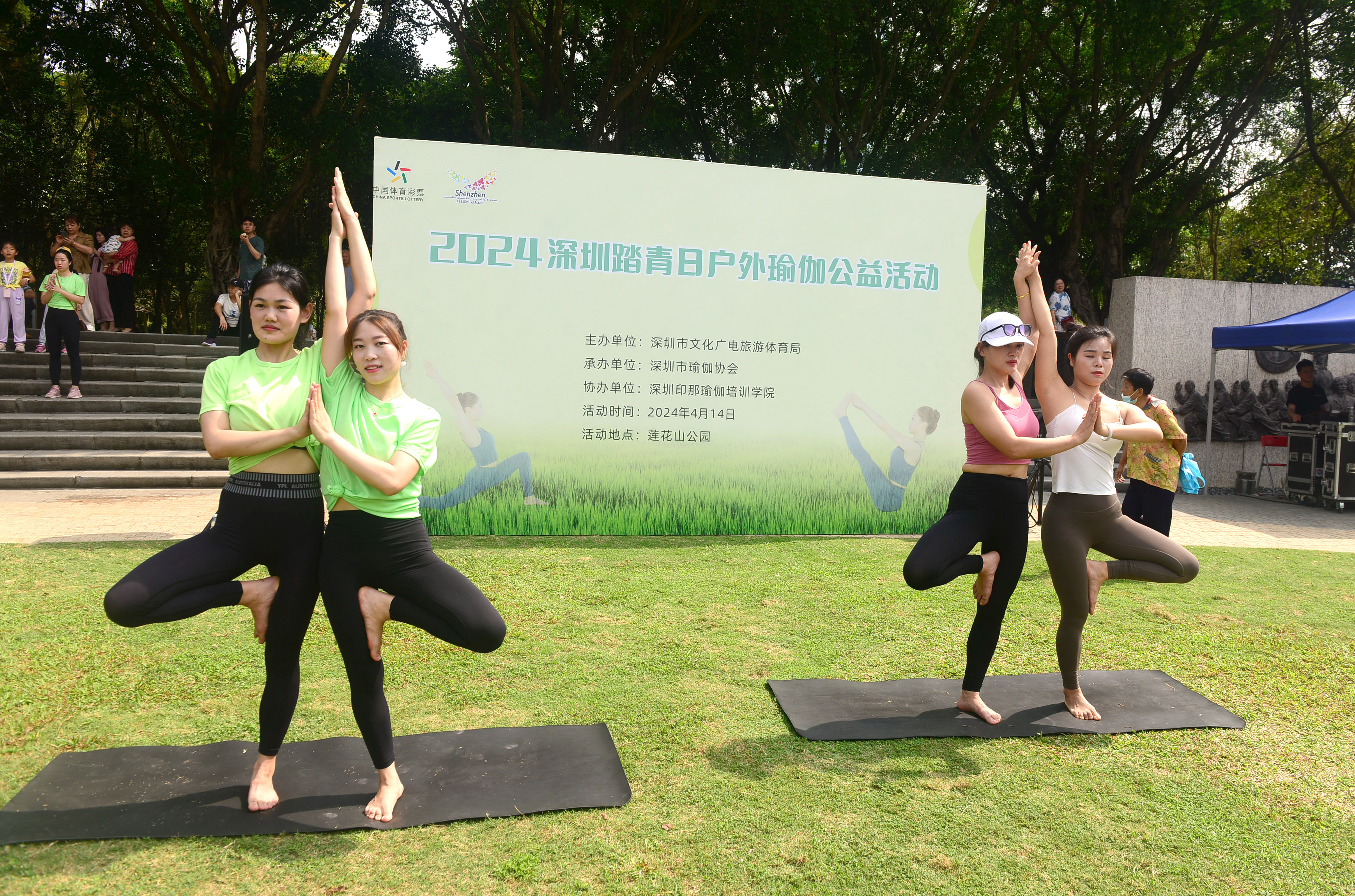 4月14日,由深圳市文化广电旅游体育局主办、深圳市瑜伽协会承办、深圳印那瑜伽培训学院协办的2024年“深圳踏青日”文体旅系列户外瑜伽公益活动在莲花山公园如期举行。