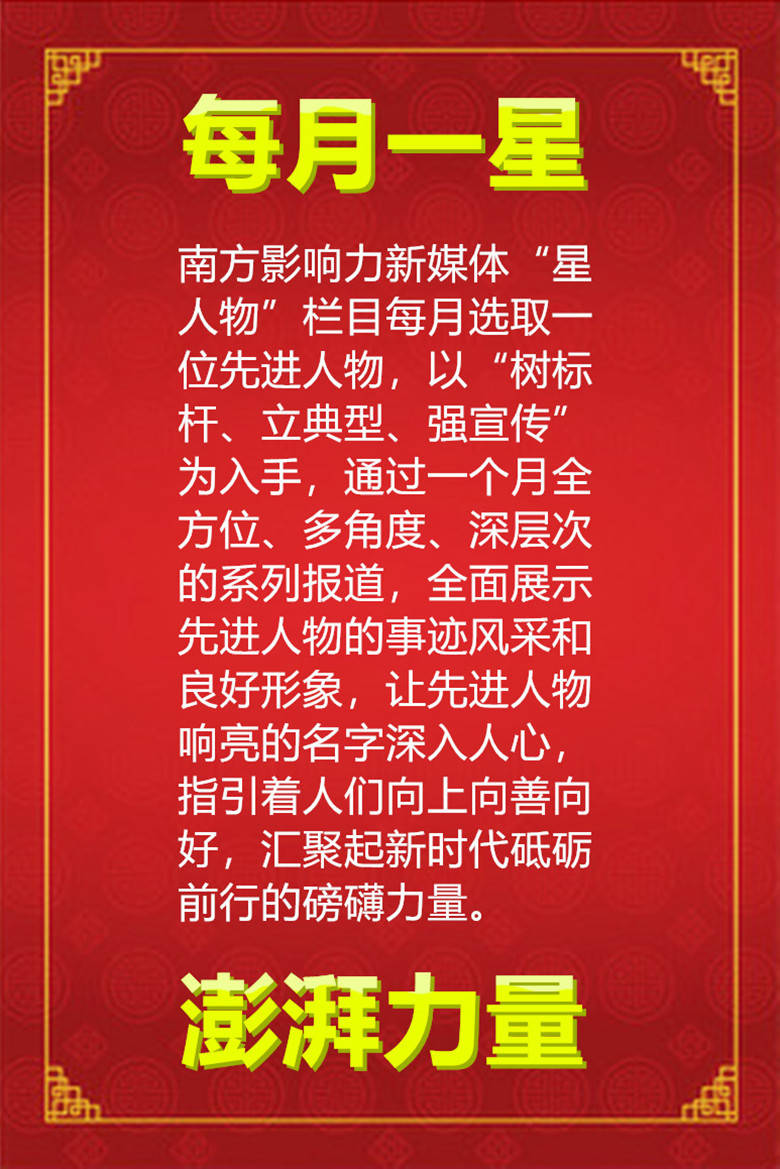 为此,在五月的这个日子里,中国品牌新锐媒体《南方影响力》“星人物”栏目将特别推出【每月一星 · 澎湃力量|凌东农业科技董事长、慈善楷模凌东事迹风采汇编】专题宣传,让榜样力量无声地激励着我们前行。