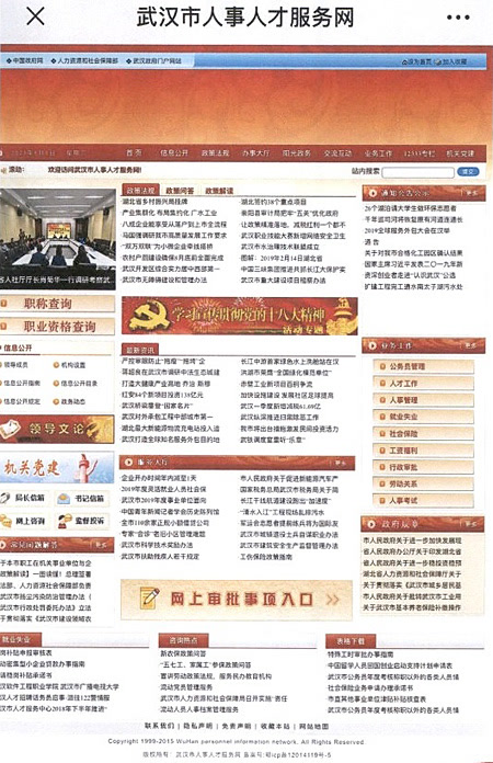 随后,这名工作人员登录“武汉市人事人才服务网”发现,该网站在主页显著位置设置有“职称查询”“职业资格查询”等窗口;网页底部信息显示,主办单位是“武汉市政务服务中心管理办公室、武汉市公共资源交易管理办公室”。