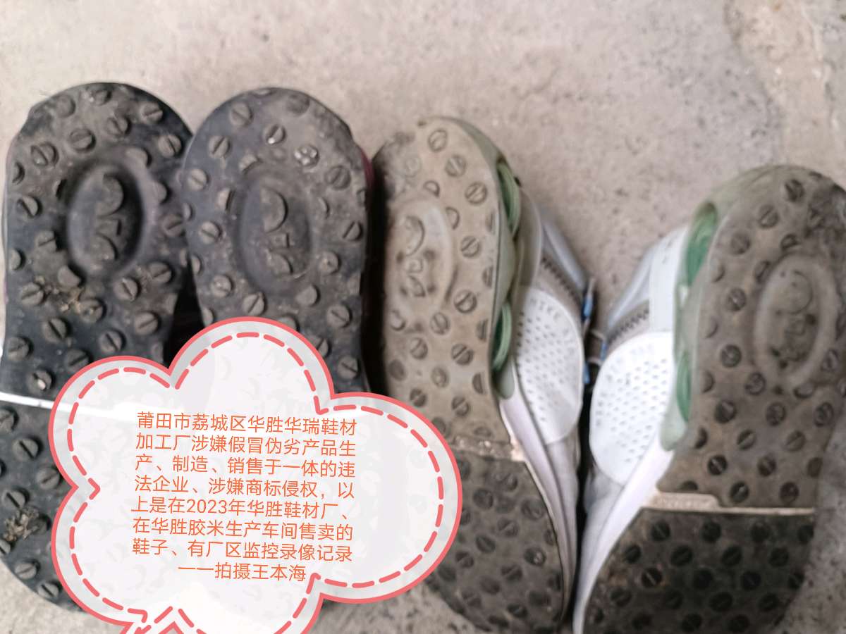 华胜(后更名为华瑞)鞋材加工厂,旗下拥有五个分厂分别是:新度镇白埕村前面139号:料米(胶米)加工厂,中底鞋材厂、分散在黄石工业园区瑶台村梅雪西路有二次中底鞋材加工厂、RB加工厂、成型加工厂,是集“生产、制造、加工、销售”于一体的完整产业链,不与350余名员工签订劳动合同,不给员工交纳社保(五险一金)和公积金,利用现金和私人帐户给员工发放基本工资,涉嫌偷税漏税的违法犯罪事实,克扣侵占员工加班工资,不仅仅是涉嫌“制假、造假、售假”的窝点;而且存在涉嫌多个品牌的商标侵权;