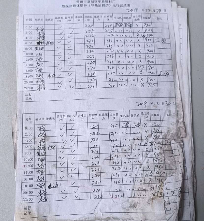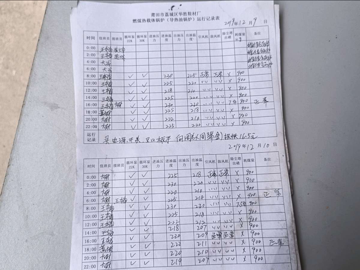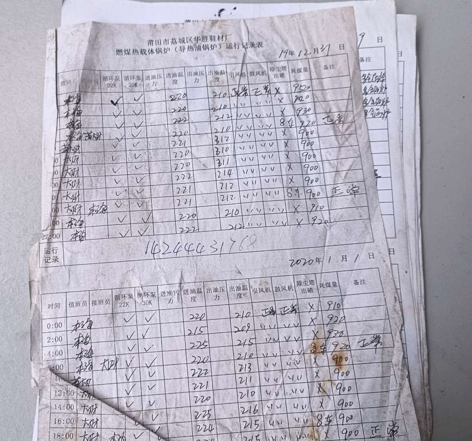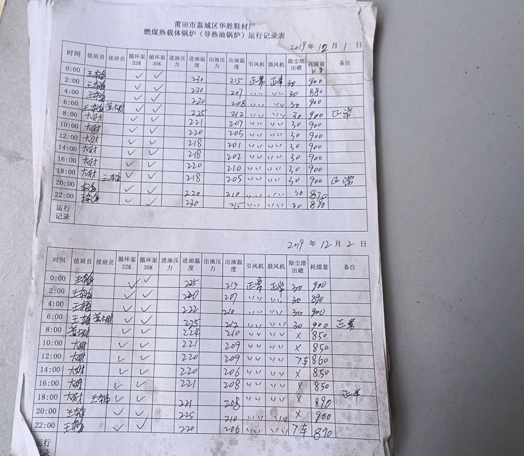华胜、华瑞鞋材厂2023年8月19日至今特种设备锅炉违法使用无司炉工操作证员工2名