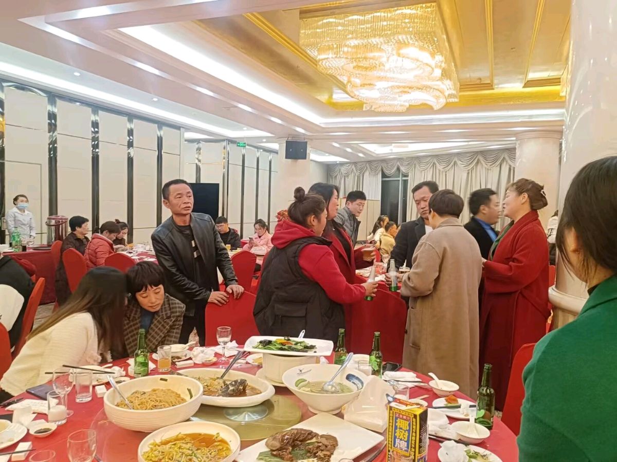 视频证据:二0二三年农历二月二龙抬头、晚上华胜鞋材加工厂、及下设分厂、华胜料米加工厂、华胜RB加工厂等等分厂、林总(林朝阳)经理、周总(周金瑞)经理、小周总经瑞、大老板龚新丽及龚新丽之妻林志宁、林总之事、财务会计等共同合伙人与各厂员工在正荣财富中心名流大酒店聚餐