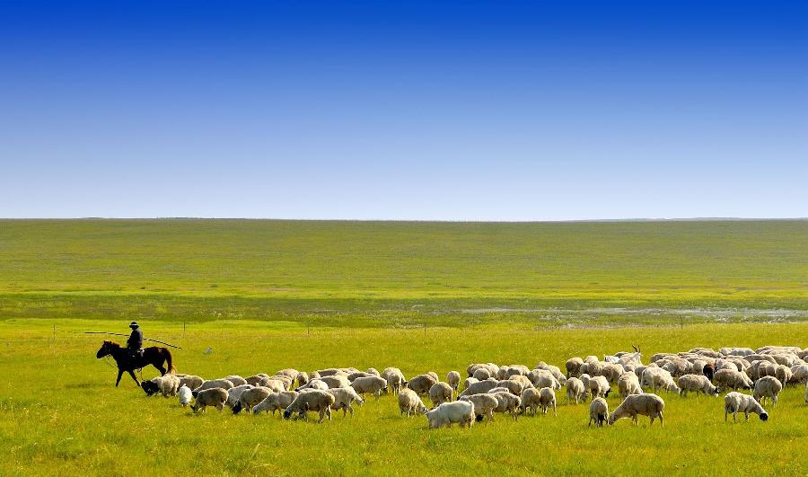 赶着羊群的草原