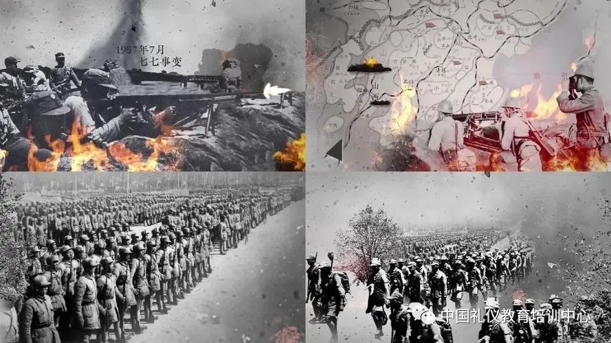 从那时起,大江南北,长城内外,全体中华儿女冒着敌人的炮火共赴国难,无论是正面战场,还是敌后战场,千千万万爱国将士浴血奋战、视死如归,各界民众万众一心、同仇敌忾,奏响了一曲气壮山河的抗击日本侵略的英雄凯歌,用生命和鲜血谱写了一首感天动地的反抗外来侵略的壮丽史诗。