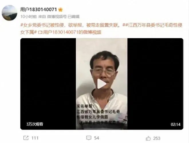 连日来,江西省上饶市万年县委书记毛奇被人网上实名举报涉嫌性侵女下属引发网络关注。