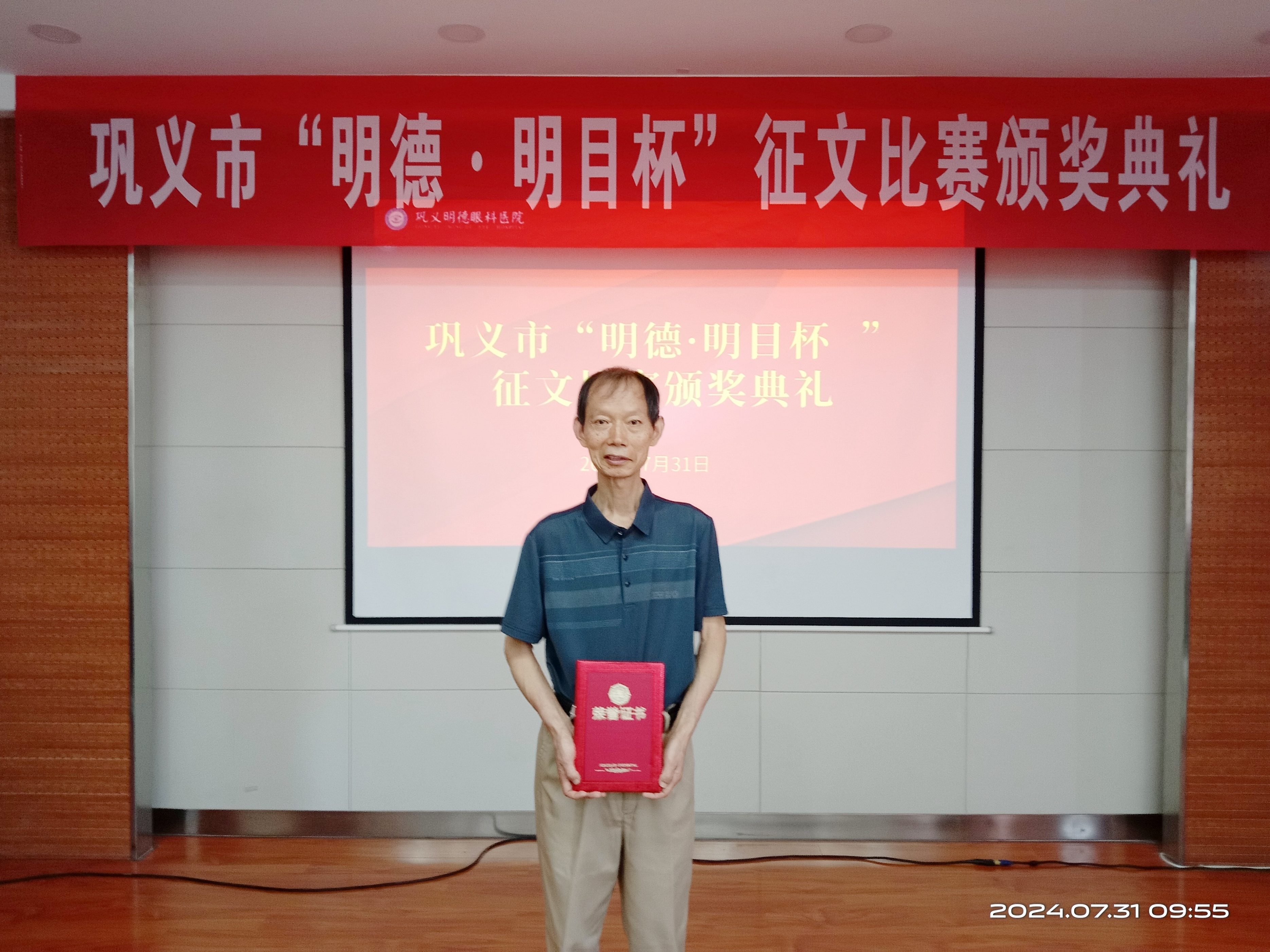 荣获巩义市“明德·明目杯”征文比赛优秀奖感怀
