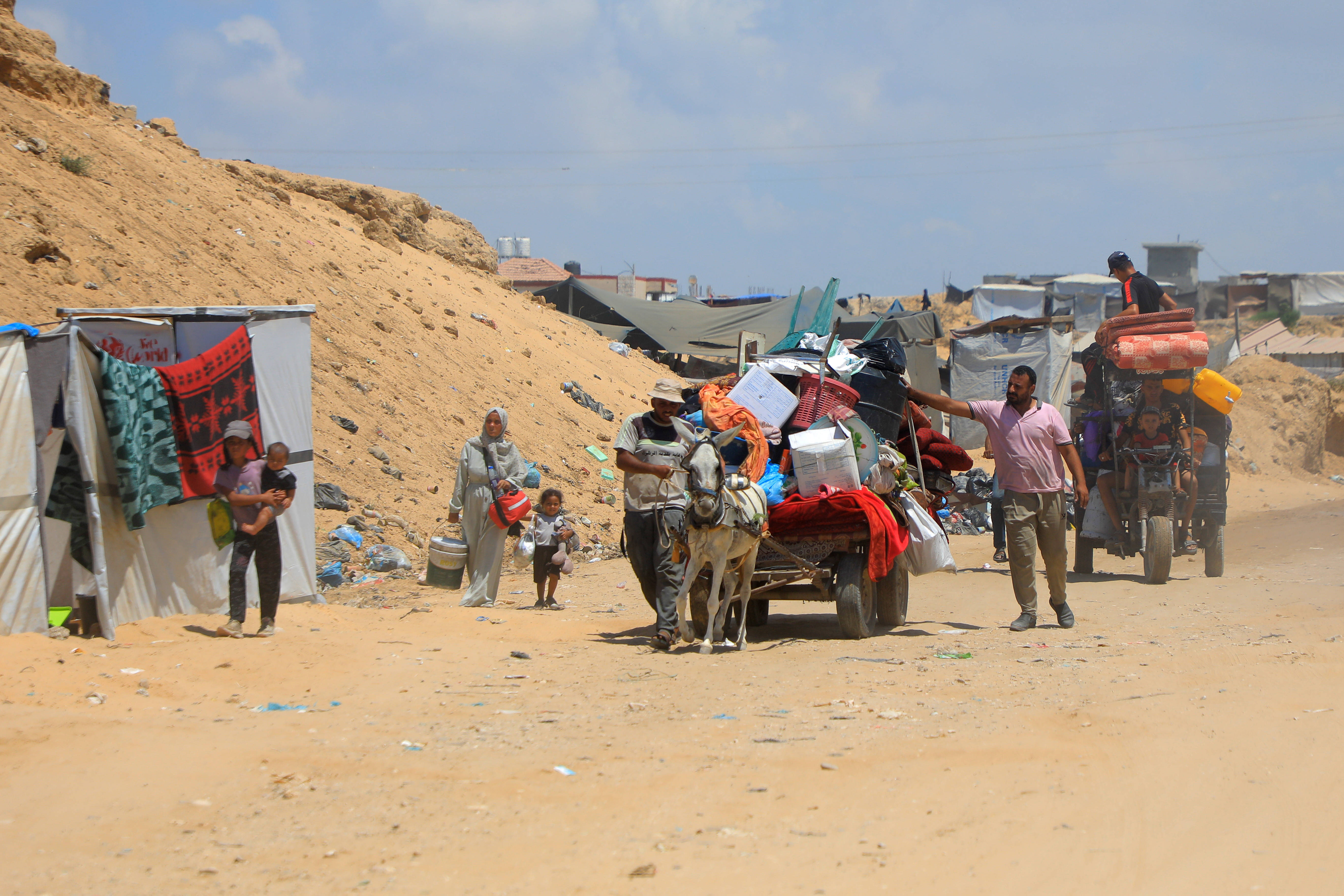 8月11日,在加沙地带南部城市汗尤尼斯西北部地区,当地民众在以色列发出疏散警告后撤离。新华社发(里泽克·阿卜杜勒贾瓦德摄)