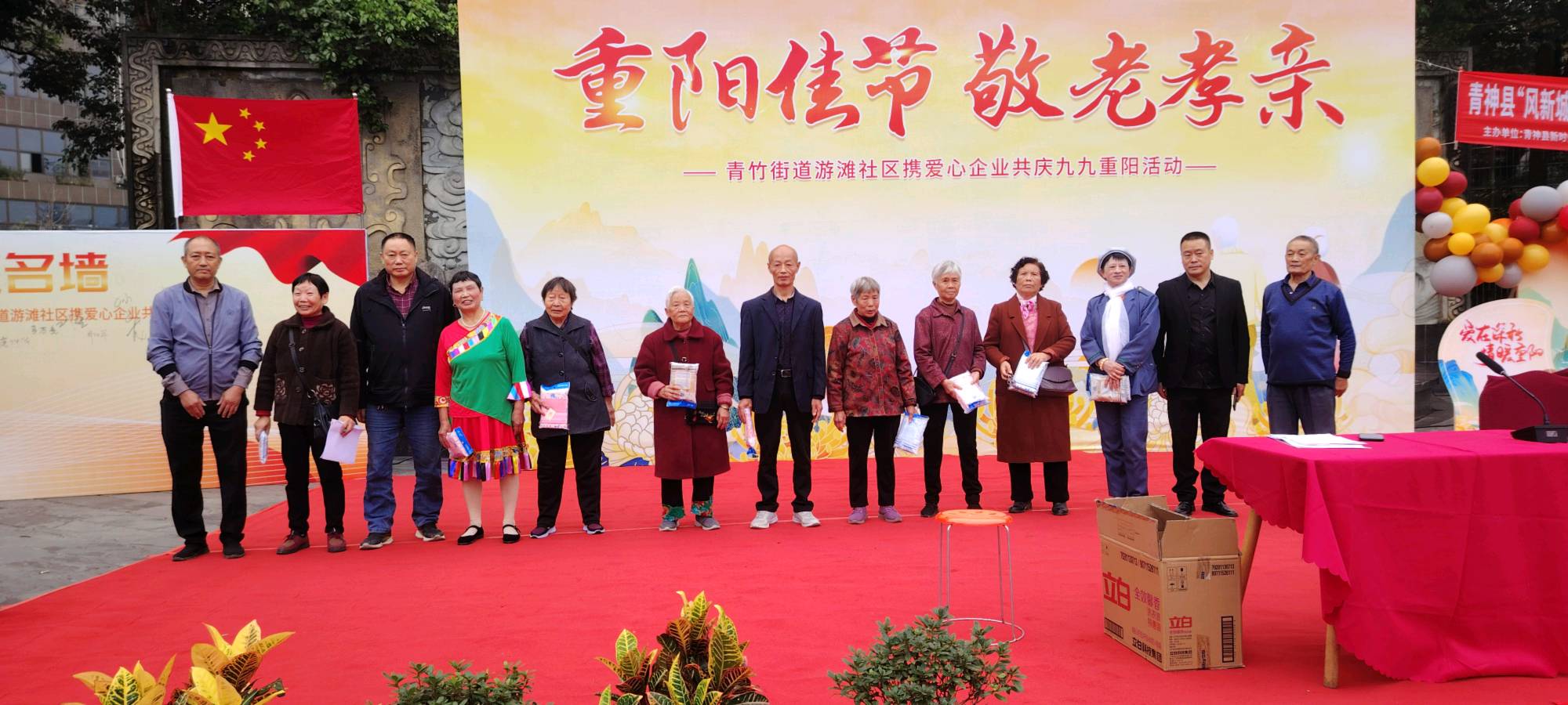 活动伊始,社区书记代表两委发表致辞,对前来参加活动的所有来宾和企业单位表示衷心的感谢,并为他们送上大礼表示谢谢。书记还祝愿全体老人节日快乐,身心健康,长命百岁。
