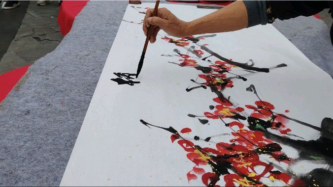 总之,国礼大师陈永华的梅花画作以其栩栩如生的形象、独特的构图、有力的笔触、鲜明的色彩和深刻的寓意,展现了深厚的艺术功底和独特的艺术魅力,成为了重阳节庆祝活动中一道亮丽的风景线。