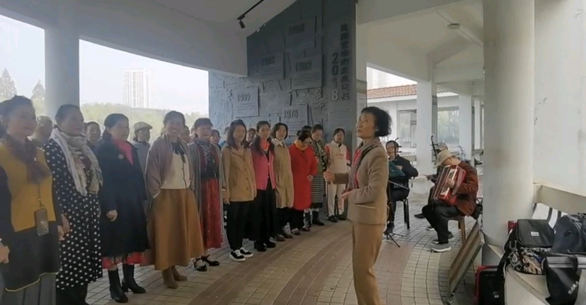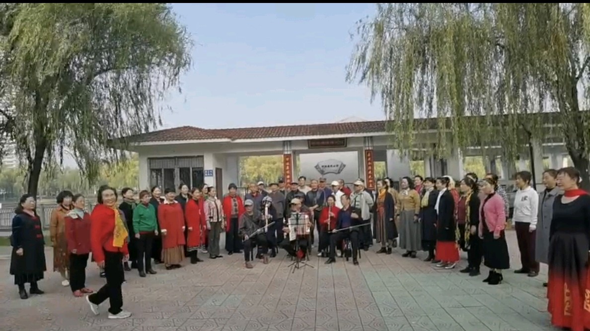 快乐时光橡树湾,胸襟豁达养生安。胡弦伴奏风光好,舞曲姿盈仙女翩。