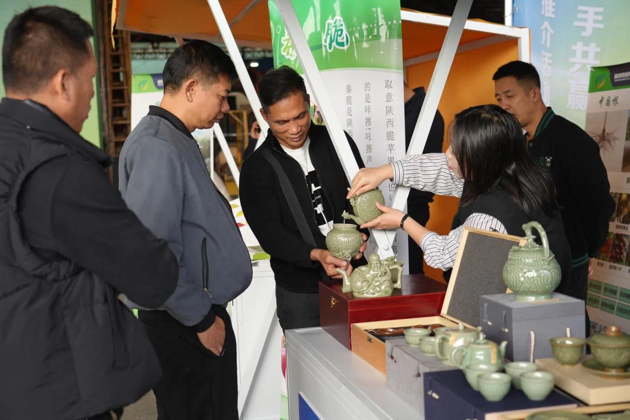 活动现场分别设置产品展示台、品鉴区,铜川的苹果、核桃、耀瓷、菌菇、饮料等50余种优质特色农产品惊艳亮相、绽放花都,吸引了不少前来市场采购的市民们围观。品鉴区的苹果、梨、核桃乳、苹果脆、樱桃饮品等特色优质产品更为采购商和市民们呈现了一场别开生面的铜川农产品盛宴。