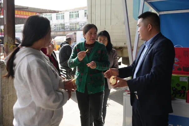 “这是来自陕西铜川的苹果,品质佳、味道可口,脆甜多汁,欢迎品尝。”陕西九州果业负责人赵远山正在第二十一届农交会现场,向前来观展客商、游客介绍着铜川苹果。本届农交会主要展示推介富士苹果,希望通过此次展会将铜川苹果送进大湾区广大消费者的“果盘”中,让更多消费者品尝到来自铜川的苹果,爱上铜川苹果。