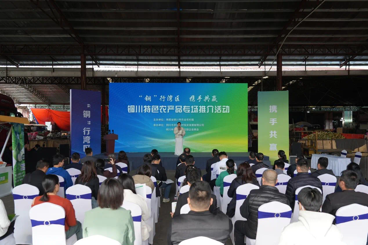 11月30日上午,“‘铜’行湾区 携手共赢”铜川市特色农产品专场推介活动在广州槎龙果品批发市场举办。广州槎龙果品市场总经理王毅致辞,铜川市农业农村局副局长张杰推介铜川农业。活动中,来自铜川的4家农业企业代表先后为与会嘉宾展示了各自特色农产品。活动中成功签约1400万元购销合同,涉及铜川多类优质特色农产品。