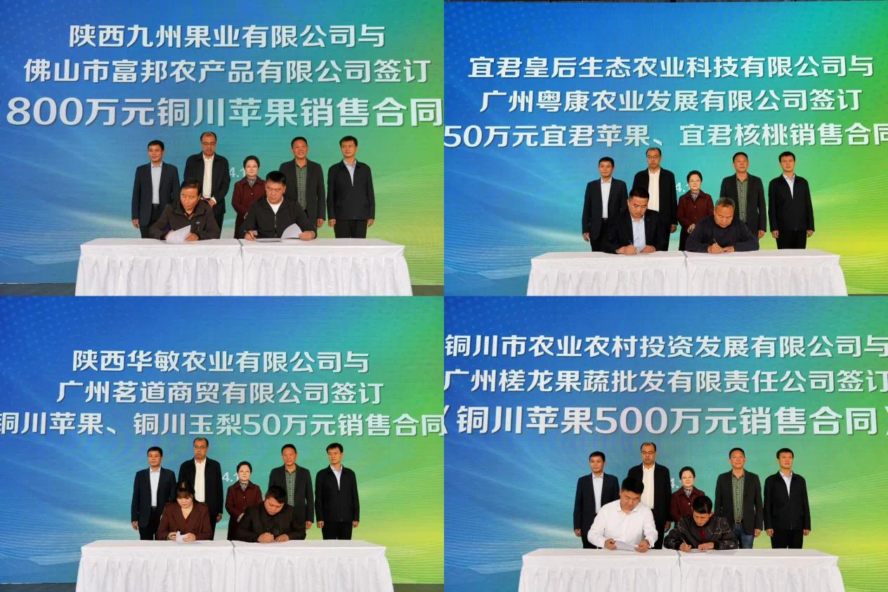 此外,专场推介会上,铜川市农业农村投资发展有限公司、宜君皇后生态农业科技有限公司、陕西华敏农业有限公司、陕西九州果业有限公司现场成功签约。签约项目涉及苹果、核桃、玉梨等多个类别,签约金额1400万元。