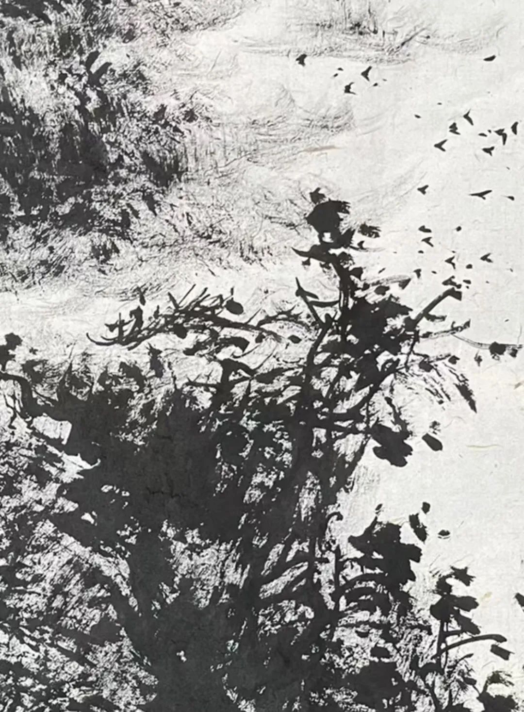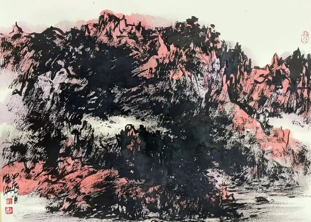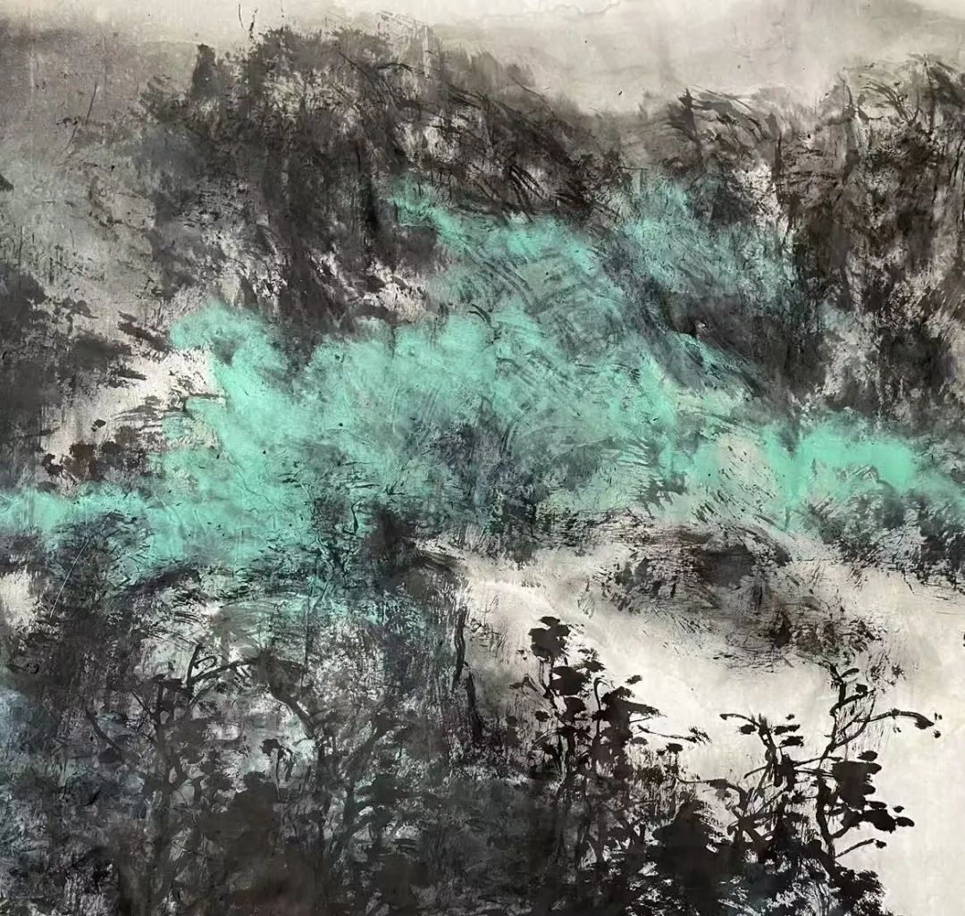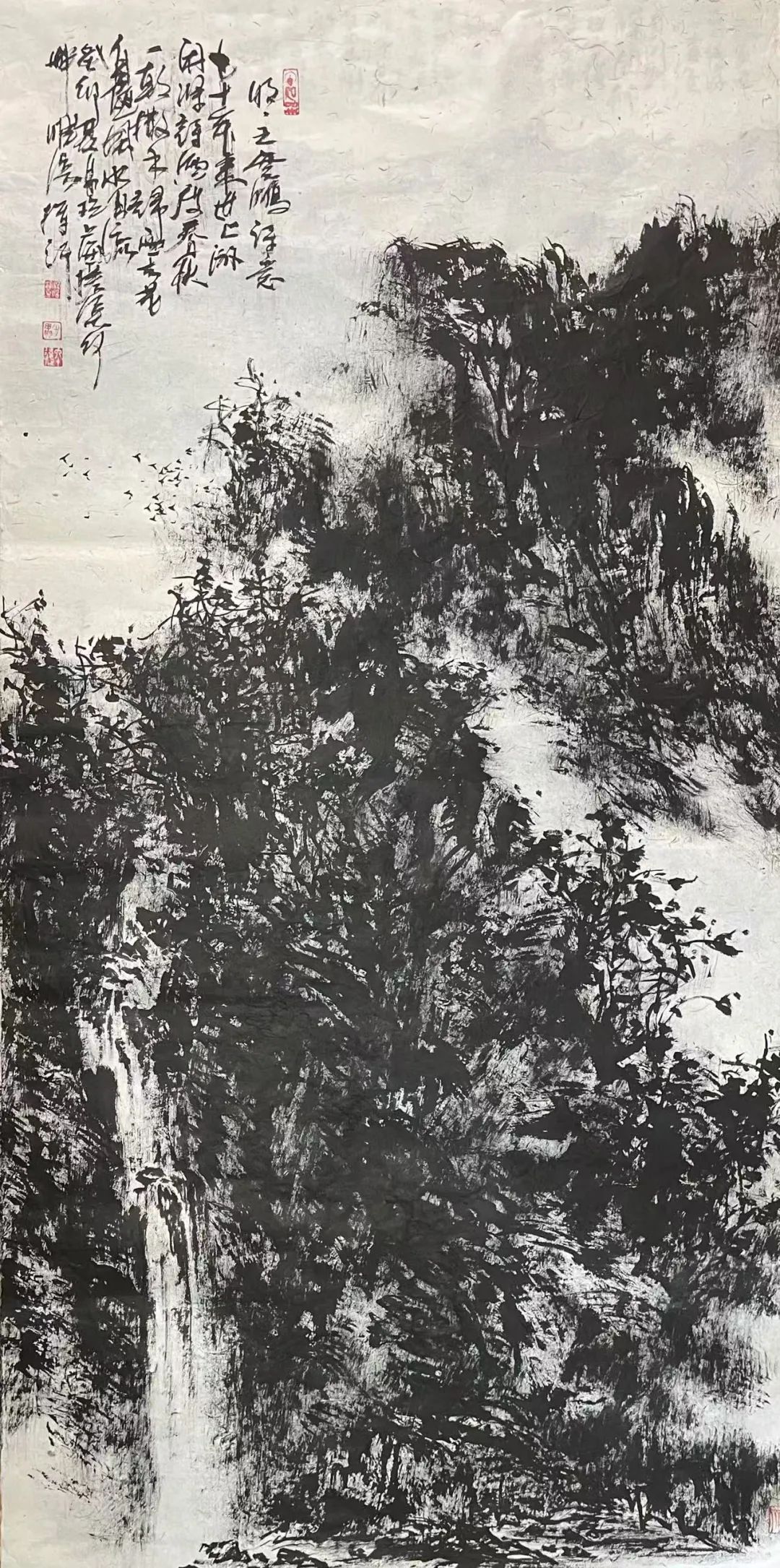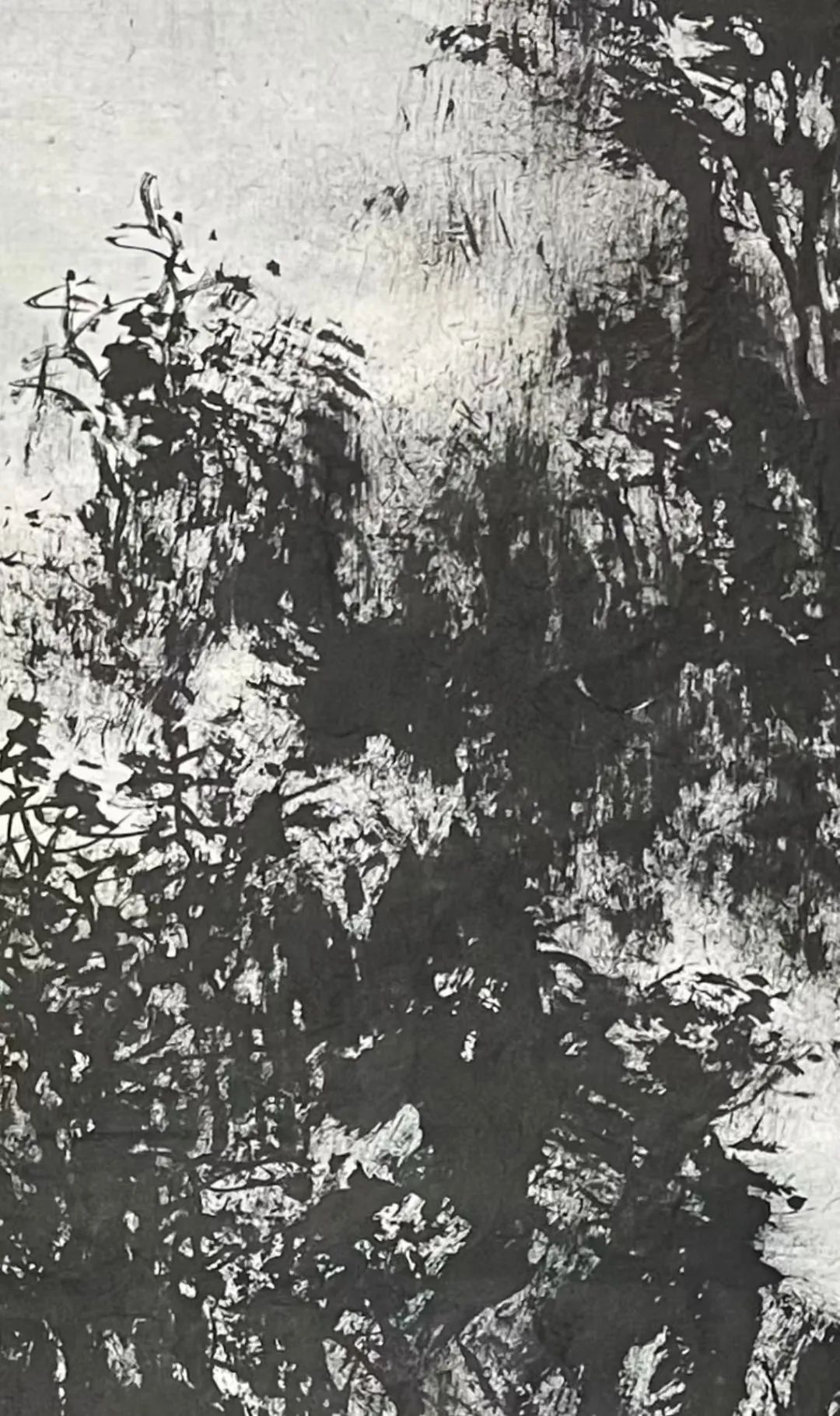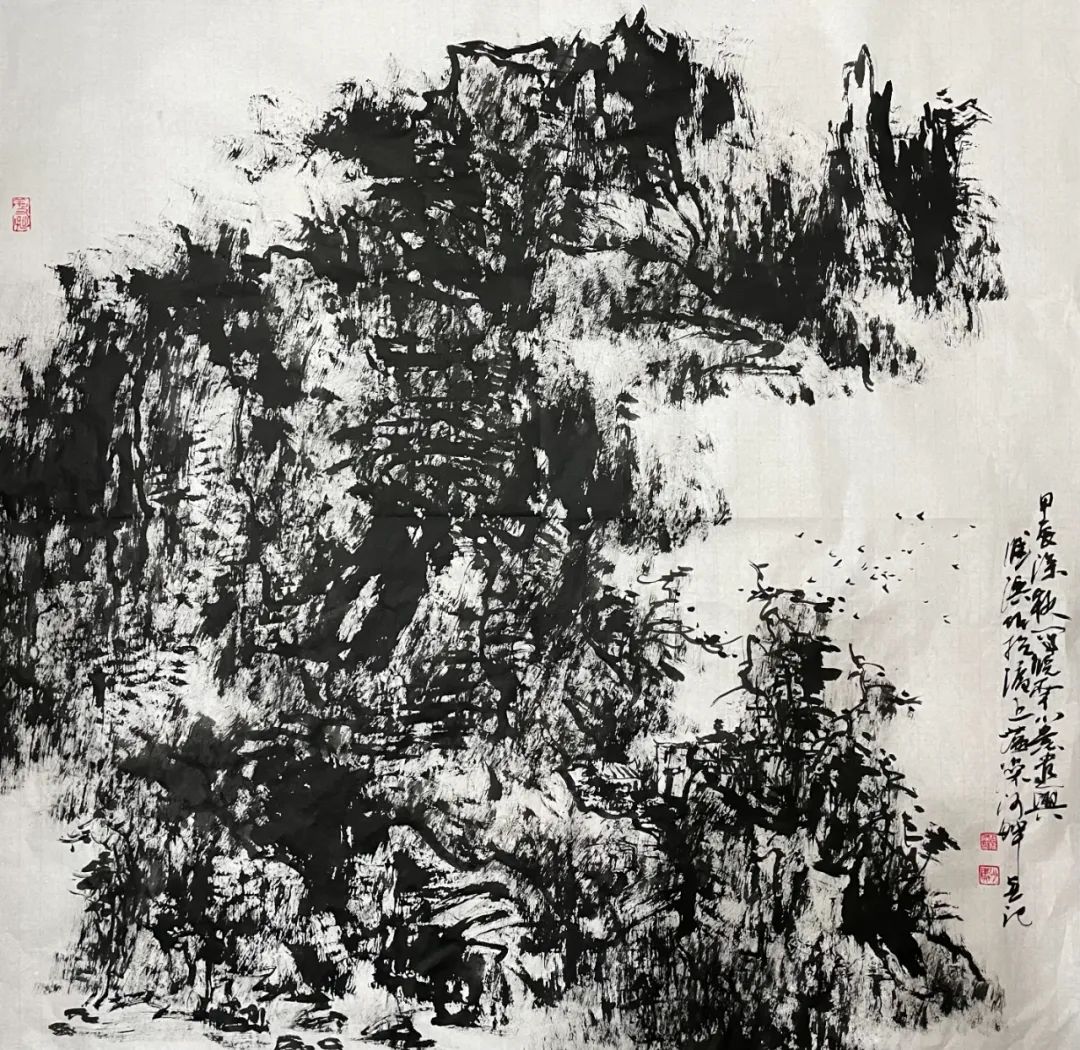 他以焦墨表现其峥嵘华滋,空灵奇逸,乾旋坤转。他的作品多为云烟幻变,林山蓊郁,泉石飞鸣,充满着生气的宇宙之大象,天地之大美,他笔下的山水是包含着个人情感与充满着心象山河;体现出“天人合一”、“大道自然”的艺术情怀。他以笔墨与山川为载体,寄托着自己的性情,抒发出对百变人生的无限感怀。