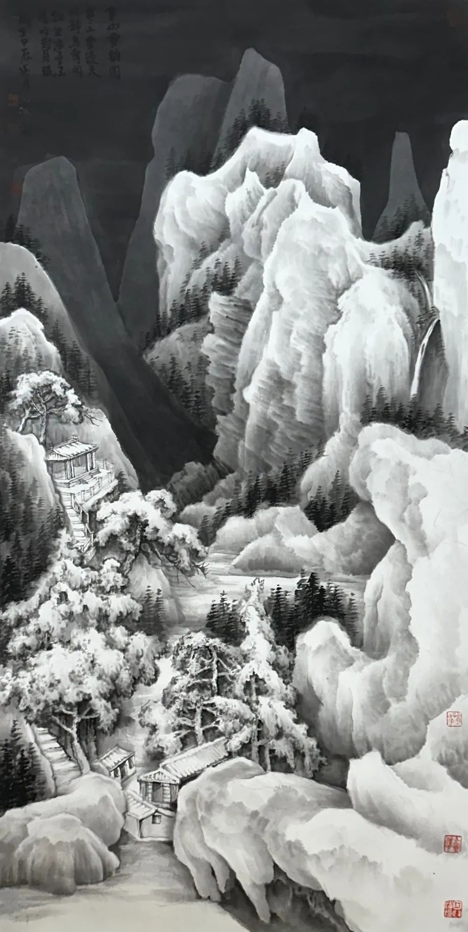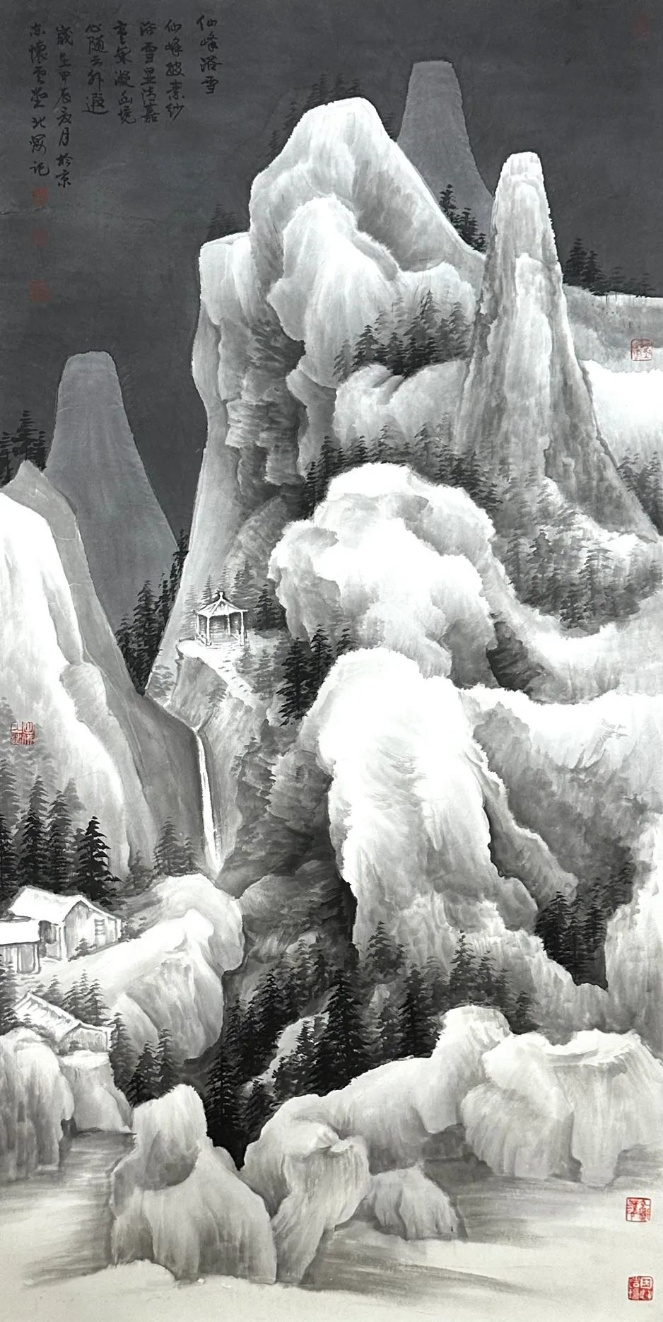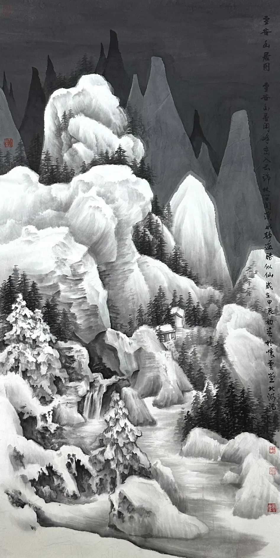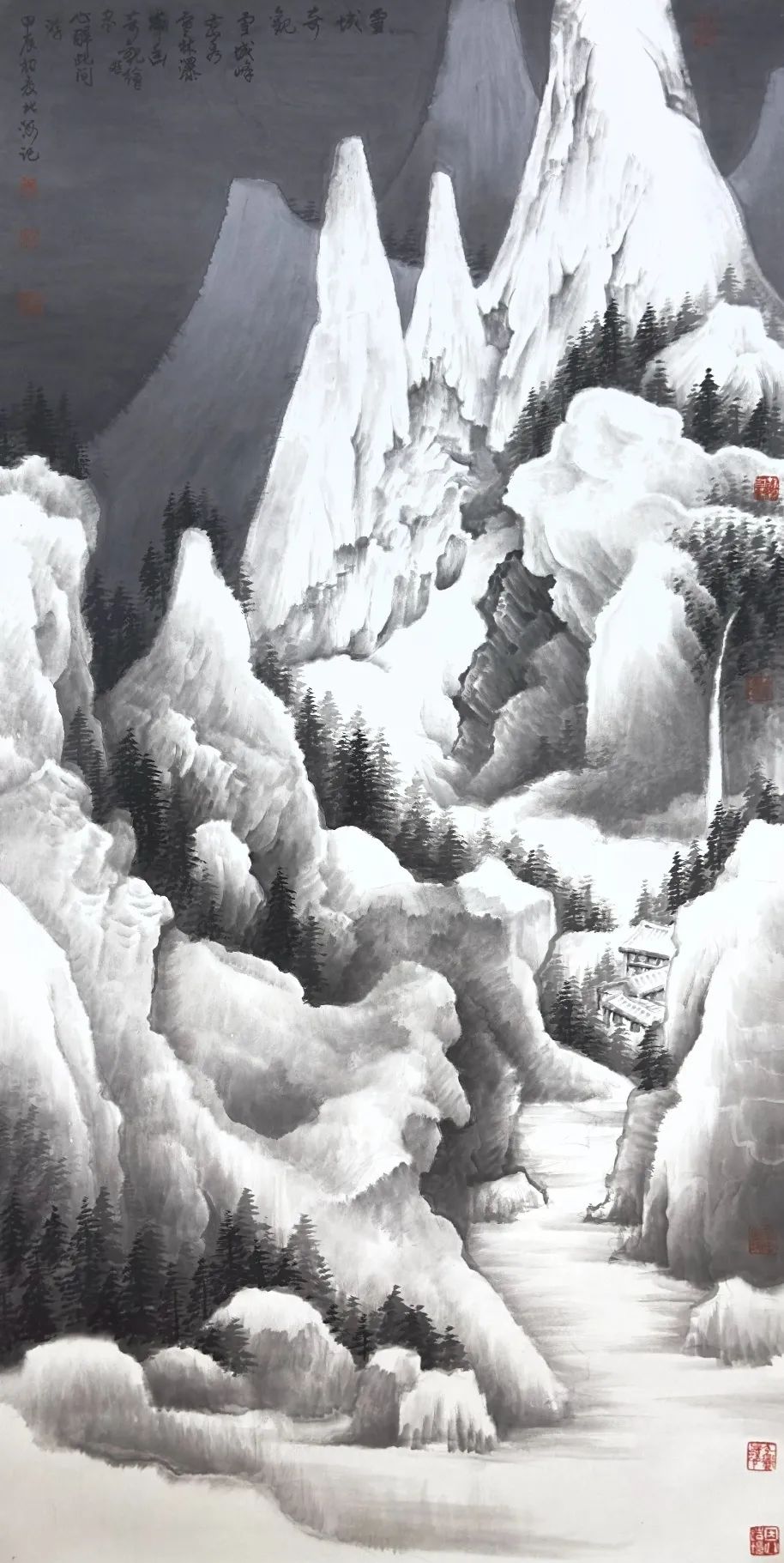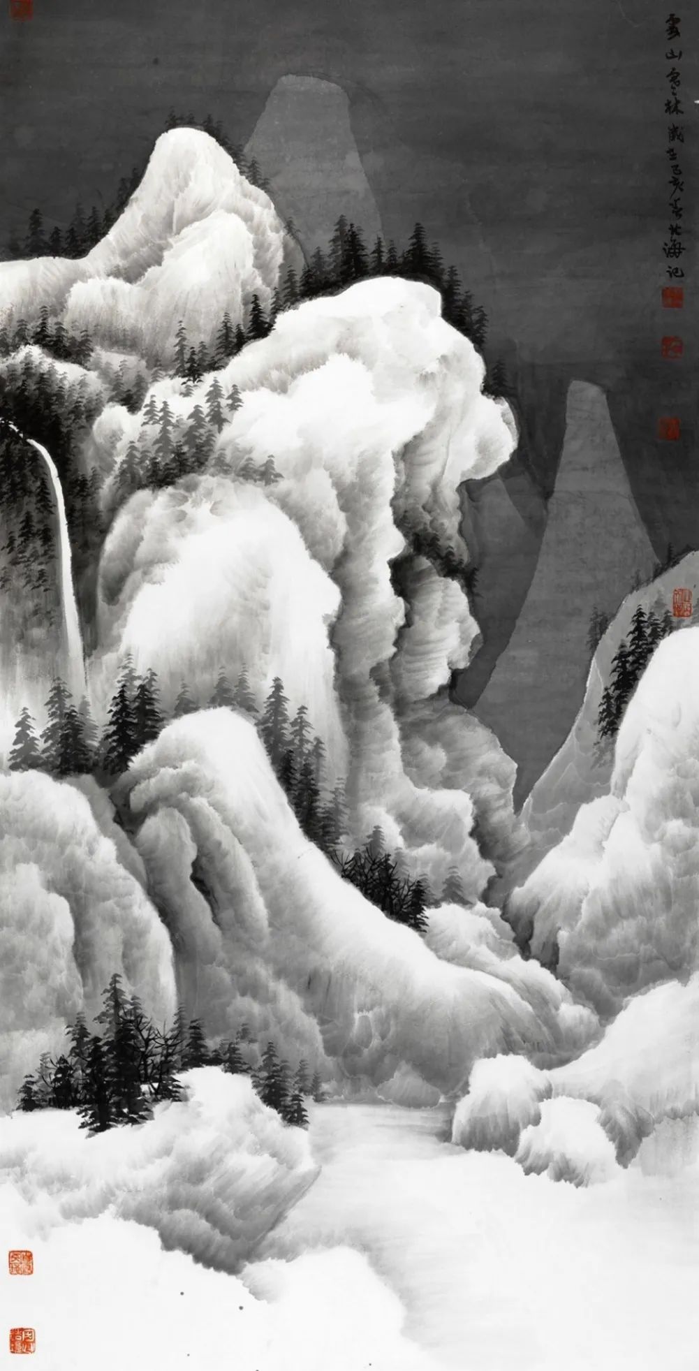 北海: 原名宋玉增,号北海、别号云乘子、画室名懷雲堂、觀雲山房。画云名重画坛的著名山水画家。中国美术家协会会员,中央美术学院客座教授,文化部中国国际书画艺术研究会常务理事、副会长。在中国山水画技法上,突破“重山轻云”的传统图式及以“留白勾线渲染”为主的单一方法,创立了以积墨步云为主新的形式风格和笔墨语言,将云提升为画面构成的主体,尽精刻微别开生面,为山水画拓展出了一个深具文化内涵和时代精神魅力的审美新领域,开创了宋家云山的新天地,为山水画领域谱写新的篇章!他曾入选中国书画报“2007年中国画十大年度人物”,其作品曾荣获中国美协全国大型美术展览铜奖、优秀奖等多项国内外大奖等,一些作品被国内外机构及国家级博物馆馆藏。北海多年来致力于继承和探索中国山水画的精髓,在突破传统和创新的交汇中走一条自己的路。在多年的创作中坚持“用心感悟自然”,本着“澄怀观象”,“悟对通神”的虚静的胸怀领悟宇宙自然的无限,超越客观自然外在的形式,深层挖掘和体现自然内在的真意,宏观探道,微观探真,用心象自然、宇宙观念与精妙的笔墨独特符号构成自己所要表达的艺术境界。他的山水画恢弘大气,雄劲苍茫,着力表现祥云山水的艺术形态。他创立了新的形式风格和笔墨语言,为山水画将具有时代感的大自然的美寓于传统的笔墨构架中。作品正大而典雅,壮美而和谐,以其独特的格调彰显〈宋家云山〉山水艺术新的风貌。著名美术评论家,贾德江评价北海水墨冰雪山水:雪景寒林,自古有之,为之者众。而冰雪山水,近世方兴,能之者稀。不意观赏北海的水墨冰雪山水作品,顿觉神清目爽,山川相繆,郁乎苍苍,境界宏大,气势雄强,真乃石破天惊之杰作,可喜可贺。其作品打破了尘封千年的格局,无论笔墨架构、水墨意象均自出新意,形成了自己宋家冰雪山水的独特面貌,可以说从古至今,宋元没有,今人没有。其原创冰雪山水作品,表现出的新手法、新面貌、新风格、新样式,完成了他心像水墨冰雪山水画的独特风格,其独特的审美范式与表现形式,可以称作“宋家样”。作品的表现技法之难,格调之高雅,样式之独特,可以说今人难以望其项背。他的原创意象水墨冰雪山水艺术既突破古人的表现手法,又开创了崭新的当代模式,为水墨意象冰雪山水艺术世界的确立与发展作出了卓越贡献。