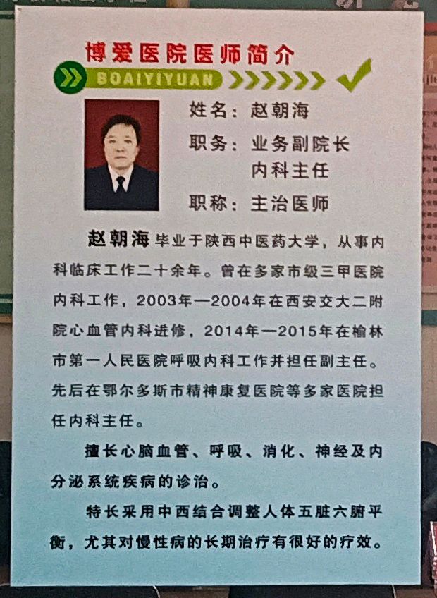 我来到了洛川博爱医院。挂号、就诊,一切按部就班。赵大夫听完我讲述的病情后,开了几张检查单:化验单、B超单、心电图单、尿检单,还有肺部拍片单。我也明白这是医院的常规流程,便遵章守纪去做检查。