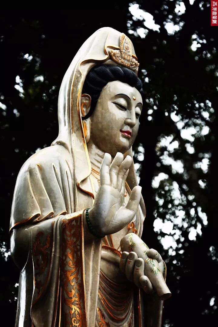 足踏莲花双目垂,立于古地水之湄,香烟缭绕蕙风吹。