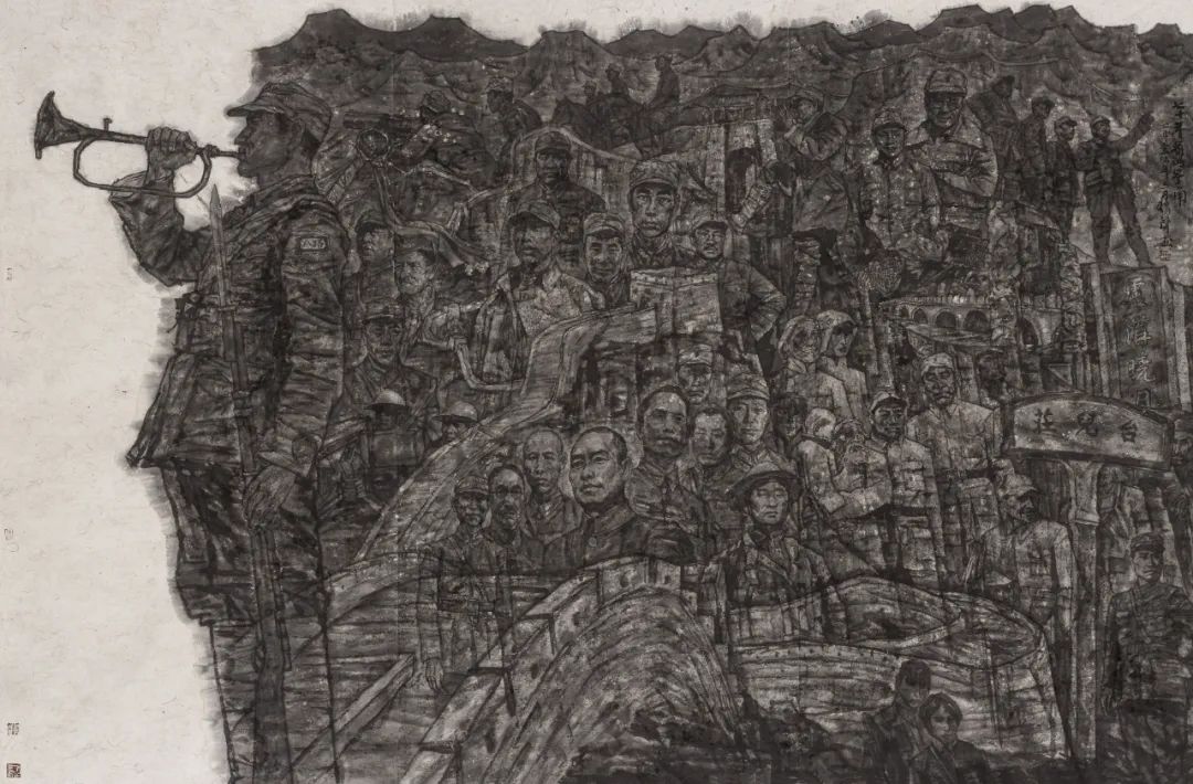 《七十年前的号角》200x300cm 纸本水墨 2015年