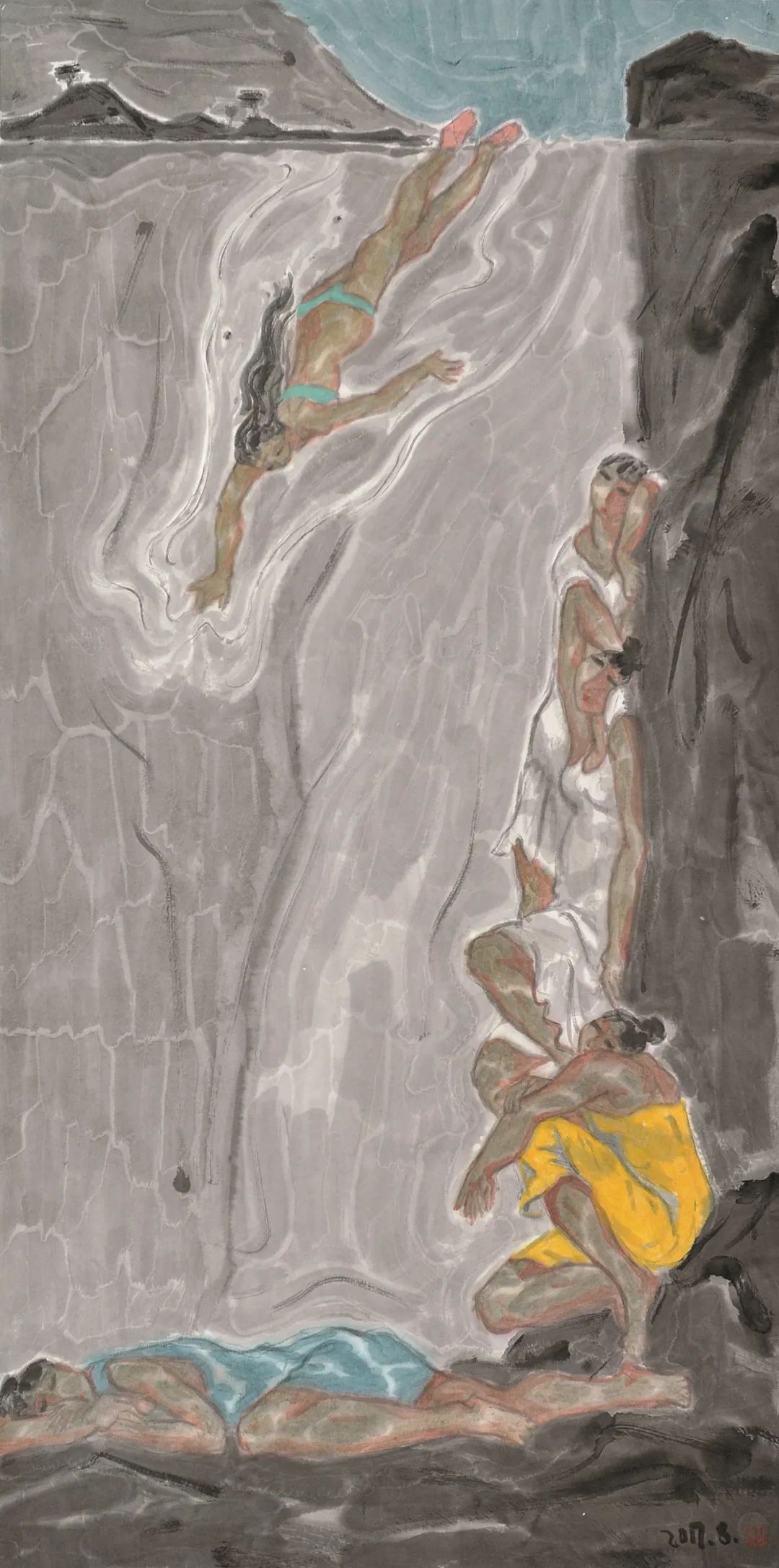 《沉沦》365X146cm 纸本水墨 2013年