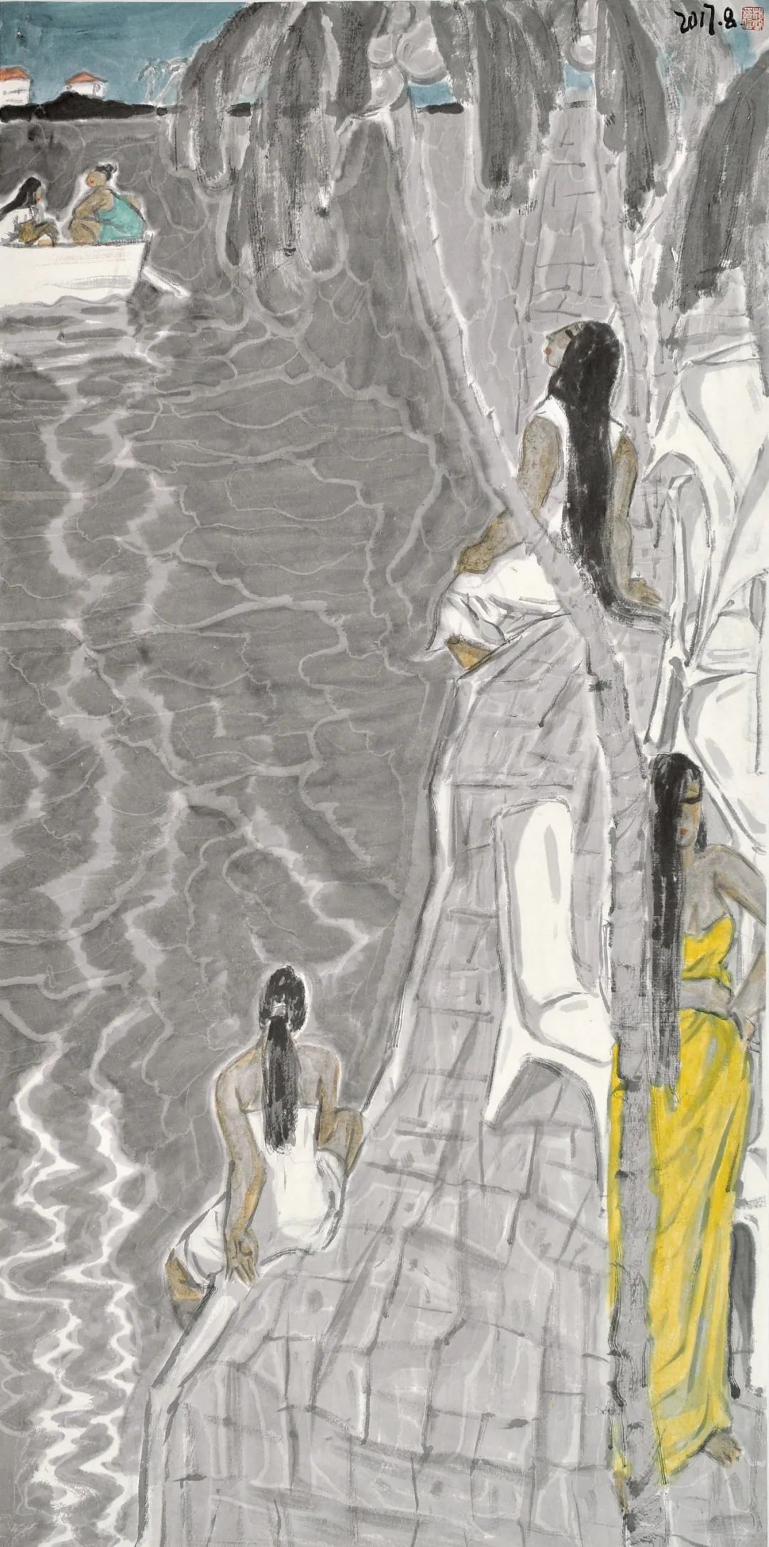 《花溪》纸本水墨 365 x146cm 2015年