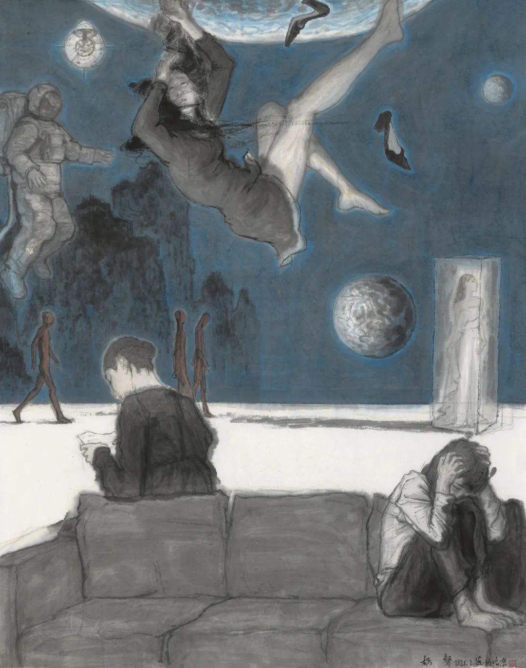 《爱丽丝》纸本水墨 146x220cm 2021年