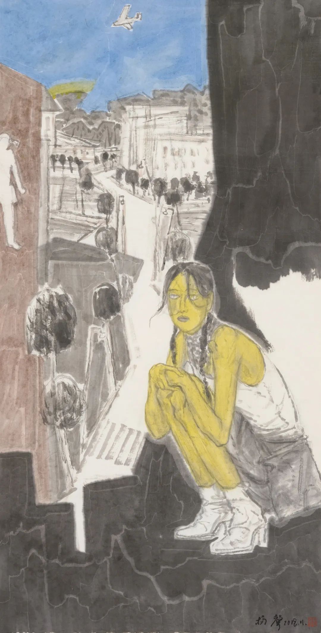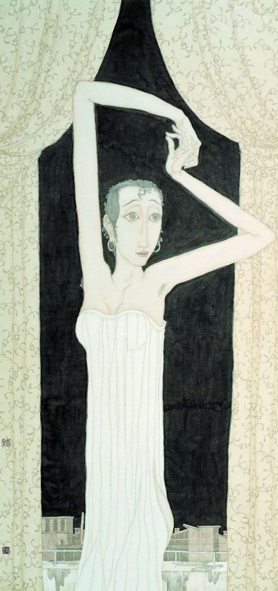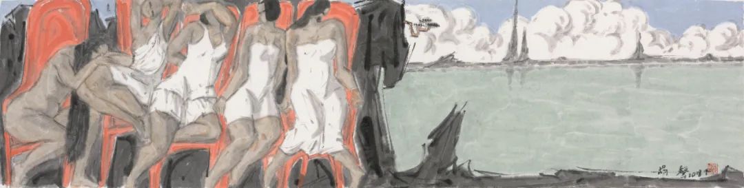 《风中的睫毛》纸本水墨 190x360cm 2002年