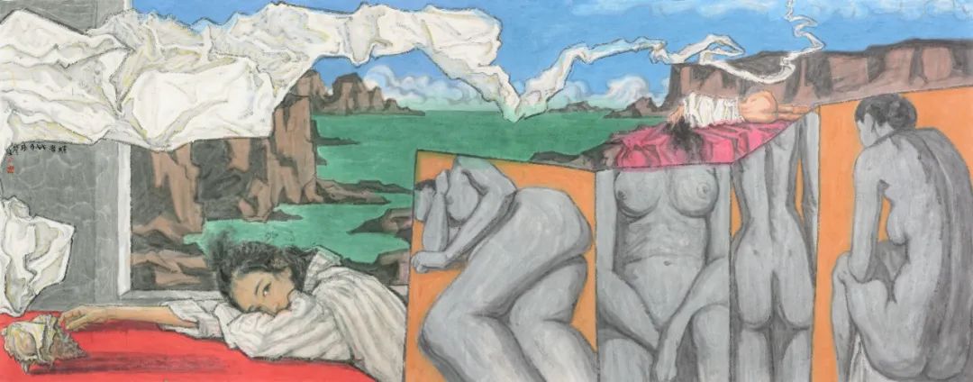 《来自心海的消息》146 x364cm 2018年