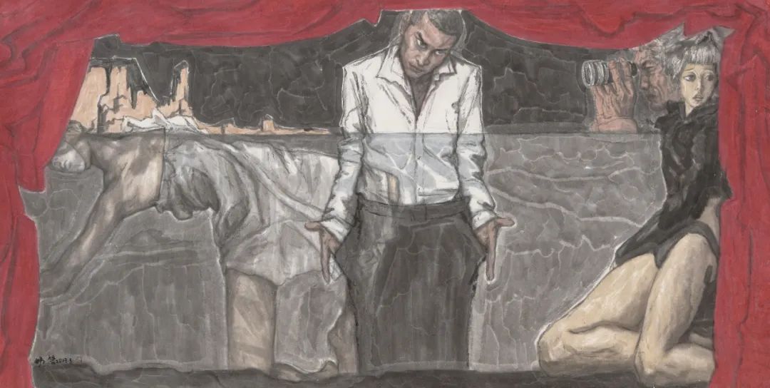 《迷失》135x68cm 纸本水墨 2018年