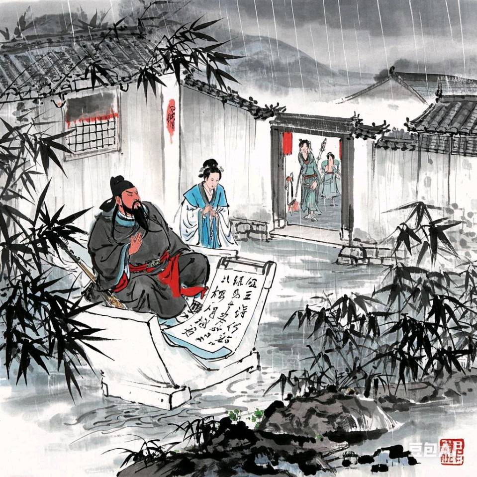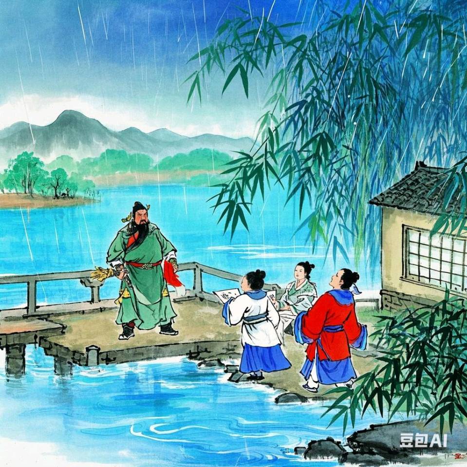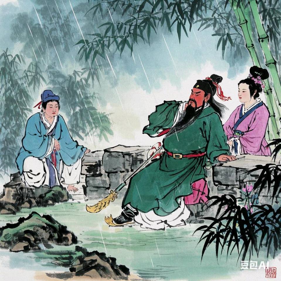据当地相传,关公携二位皇嫂由袁绍军去徐州陶谦处寻访刘备,路过阳野村(今山东省肥城市石横镇隆庄)时狂风大作,骤雨倾盆,关公急避于紫云桥下,顷刻积水殊深,于附近民家安下二嫂,自于大门底休息,待雨过天晴,空气清新,关公以纸墨绘一风雨竹画幅,临行留与房东,以作纪念。房东观其非平庸之士,世代珍存。后人崇敬关公,因此将关的风雨竹作品镌刻于石。