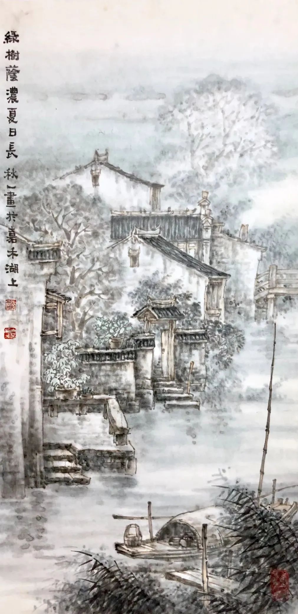 凌大纶:别号秋一,1951年6月出生于上海,祖籍浙江湖州。山水画家,擅长描绘水乡田园和古镇风情,以江南烟雨朦胧水气氤氲的表现手法为特色。曾任嘉兴美术馆馆长、蒲华美术馆馆长、嘉兴画院院长。现为中国美术家协会会员、国家一级美术师、文化部国韵文华书画院艺委会委员、上海江南书画研究院副院长、嘉兴市文史研究馆馆员、嘉兴市政协书画会副会长。