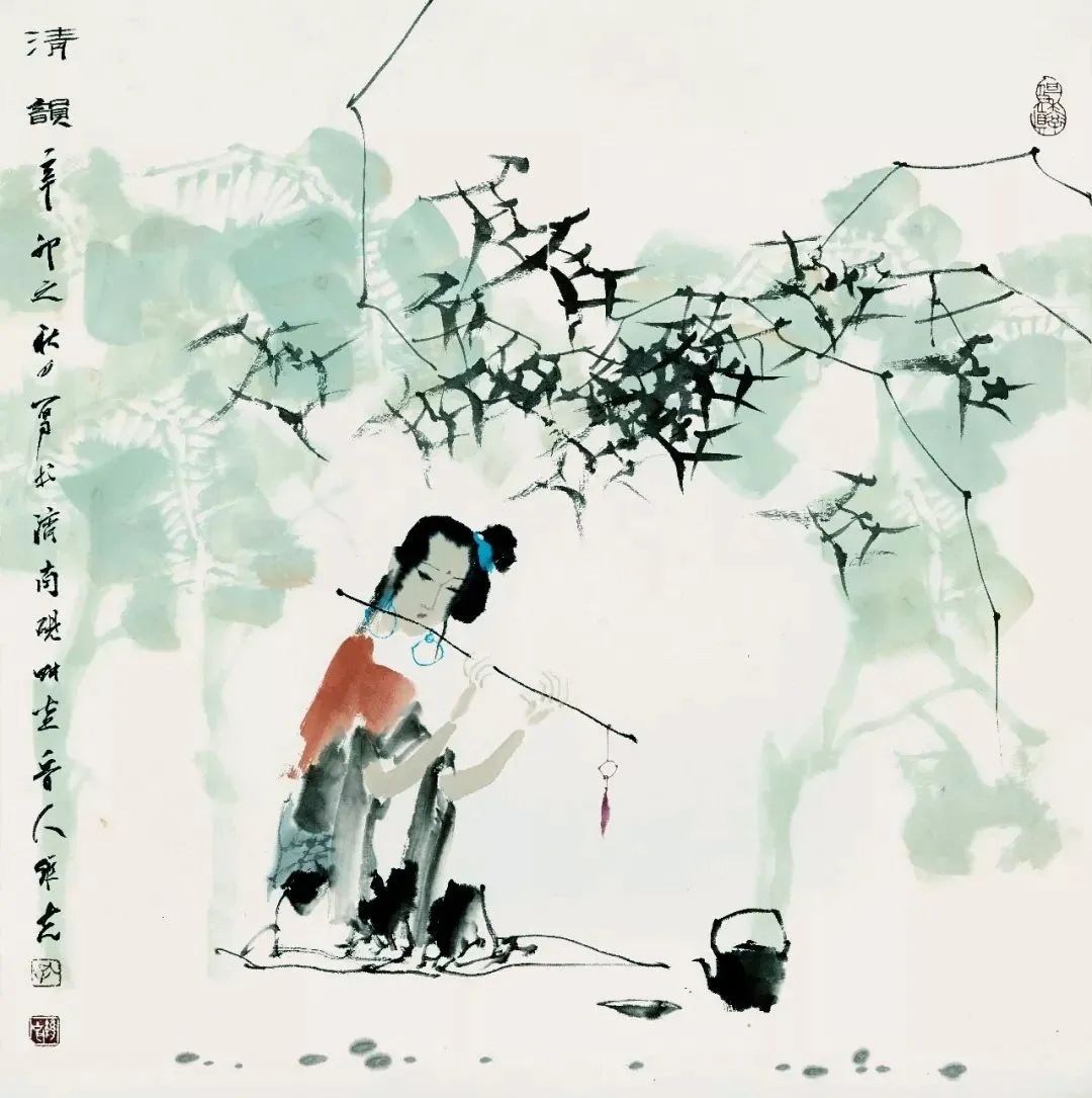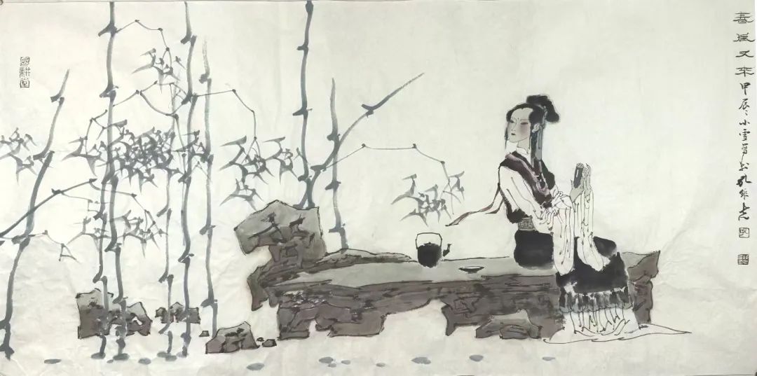本文特选取孔维克先生的古典人物画作为核心研究对象——这一领域不仅是画家连接传统文脉与当代审美的关键枢纽,更集中体现了他以“古意新诠”重构东方美学的艺术探索。“古典人物画” 这一概念,既涵盖创作选题,也包括与之适配的表现手法。古代画家绘制历史人物作品,是一种由来已久的传统。在当代,不少人物画家同样热衷于创作古代题材的小品人物画,不过大多将其作为一种排遣兴致、用于笔墨应酬的小品创作。而孔维克先生通过对古代高士、仕女等经典题材的再造,在历史褶皱中激活了儒家精神与文人理想的当代转换,使千年笔墨传统在解蔽与重构中完成了从“文化基因”到“视觉语法”的范式转型。他站在当代视角审视传统文化,以现代思维整合传统笔墨符号,在画面意境开拓、形式构成、线条组织、用墨施色等方面,进行了个性化探索,在古人、今人都反复重复画过的题材中开辟新意境、呈现新面貌,为中国画人物题材的现代转型提供了具有方法论价值的实践样本。儒家思想作为中华传统文化的核心组成部分,深扎于民族文化的土壤之中,成为一种独特的文化基因。在漫长的历史进程中,儒家思想孕育了独特的文人理想,塑造了中国古代文人的精神追求与价值理想。步入当代社会,儒家精神和传统文人理想在新的时代背景下发生了转译。古典人物画创作也在这一文化转译的浪潮中,承载着新的时代使命,成为传播经典思想的艺术媒介。孔维克先生的创作始终围绕一个核心命题:如何在当代艺术语境中激活传统文化的生命力,推动实现文化基因的当代转译。作为孔子第七十八代嫡系裔孙,不仅以血缘为纽带延续文化使命,更通过艺术实践将儒家精神与文人理想注入当代语境。他将古典人物为突破口,站在当代视角进行创作,深入挖掘儒家精神内核并将其融入于绘画图像中。