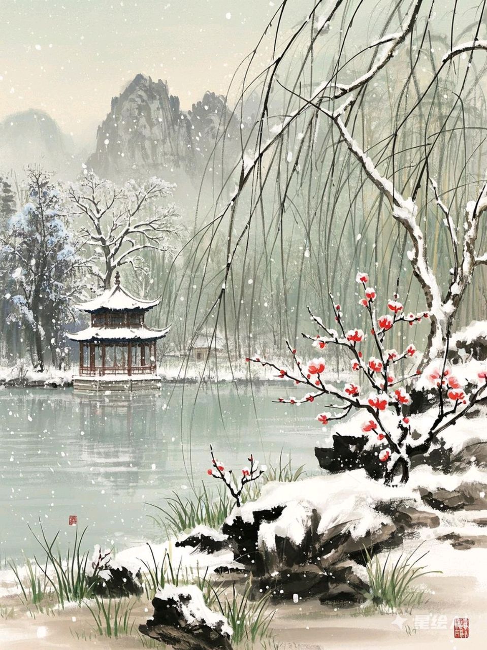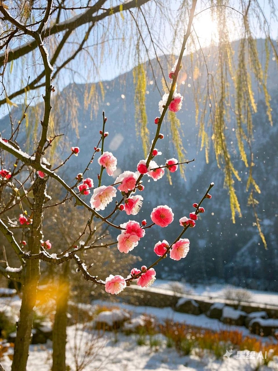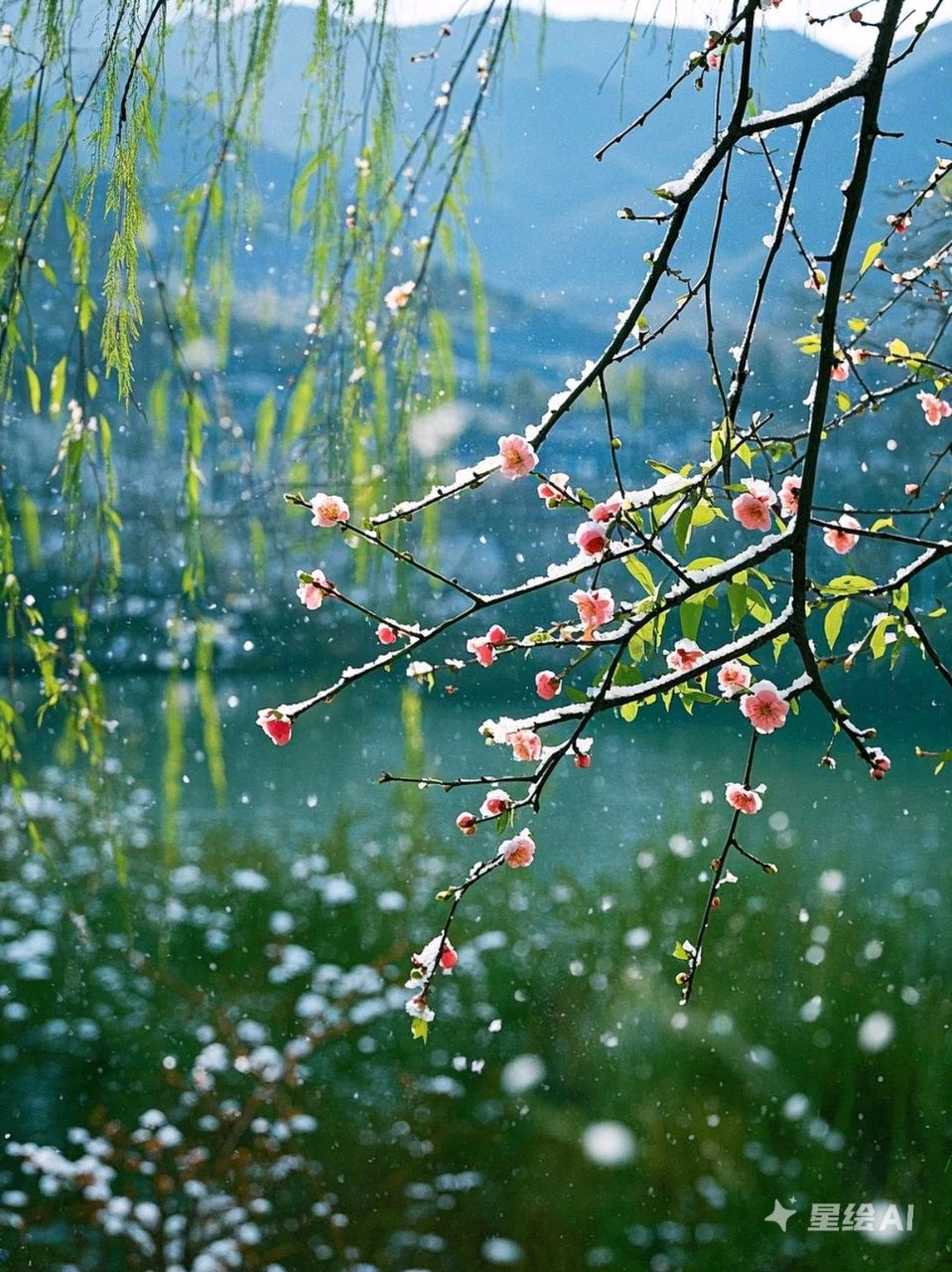 梅花绽放添雅韵,柳丝垂舞展新颜。