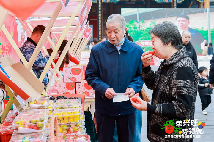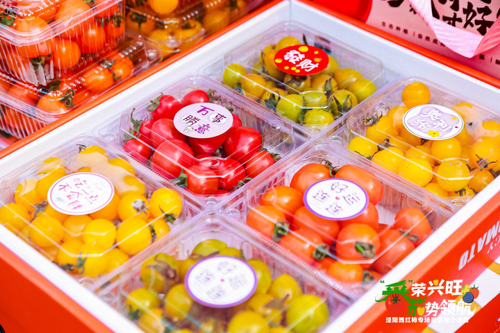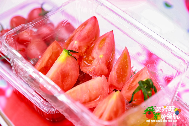现场,27家企业合作社还带来了“奋斗柿”“柿愿”“花田喜柿”“润兴园”等品牌西红柿产品供现场的市民朋友免费品尝。