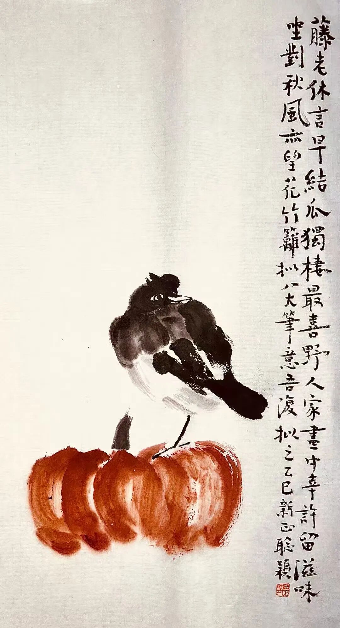 自题鸟栖南瓜图