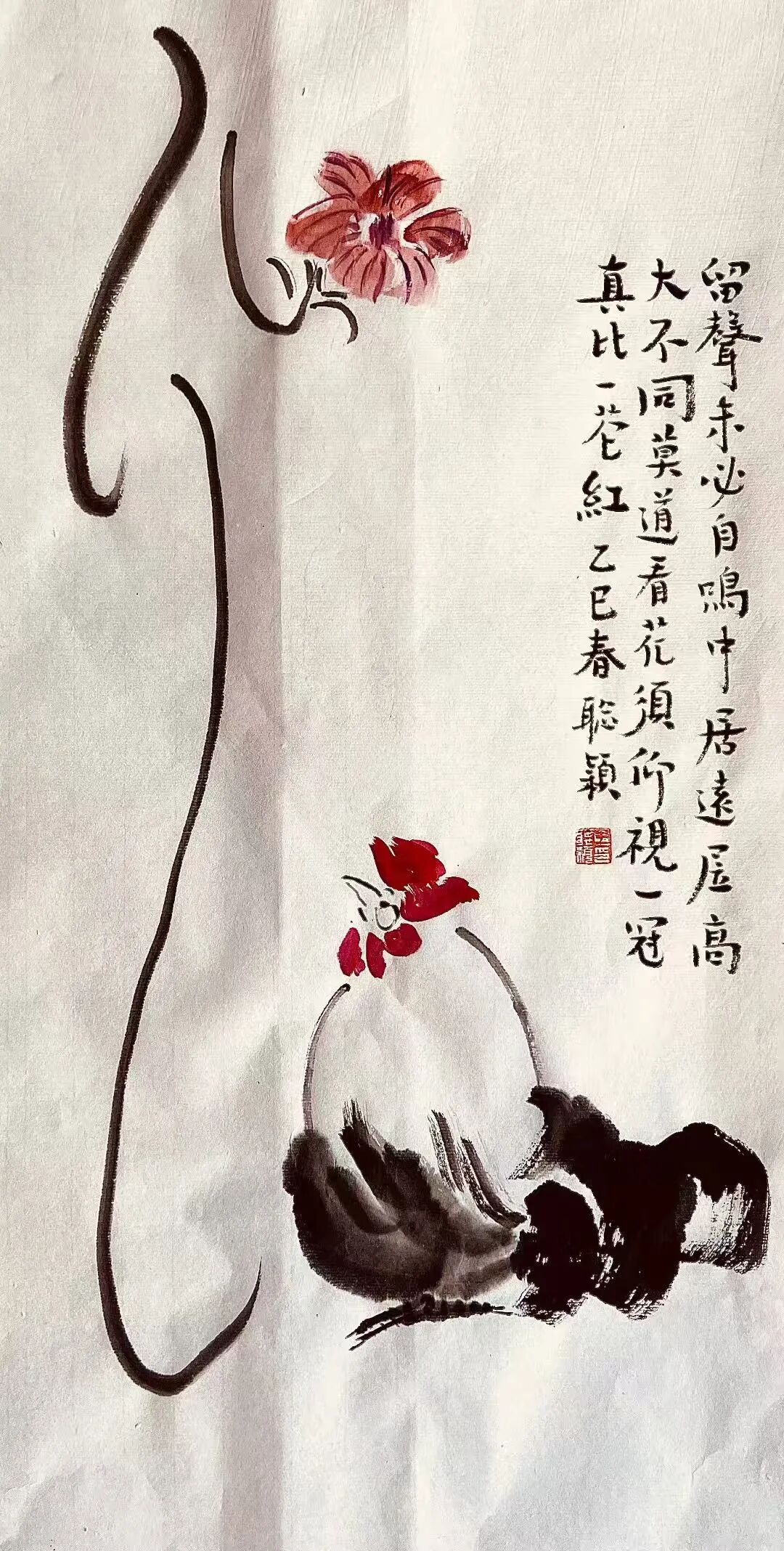 自题雄鸡秋花图
