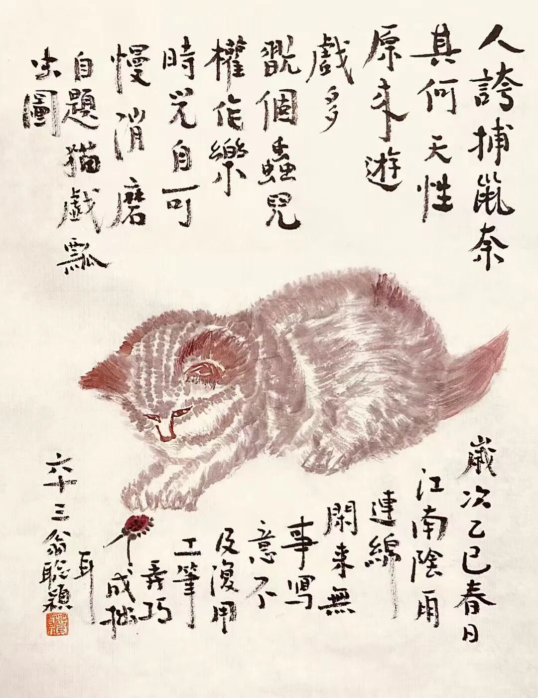 自题猫戏瓢虫图