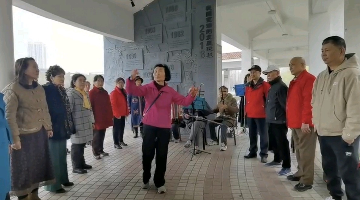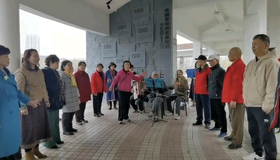 琴瑟廊桥你我她,和声动听伴音佳。媚娘领唱姿容俏,老叟欢娱气质华。