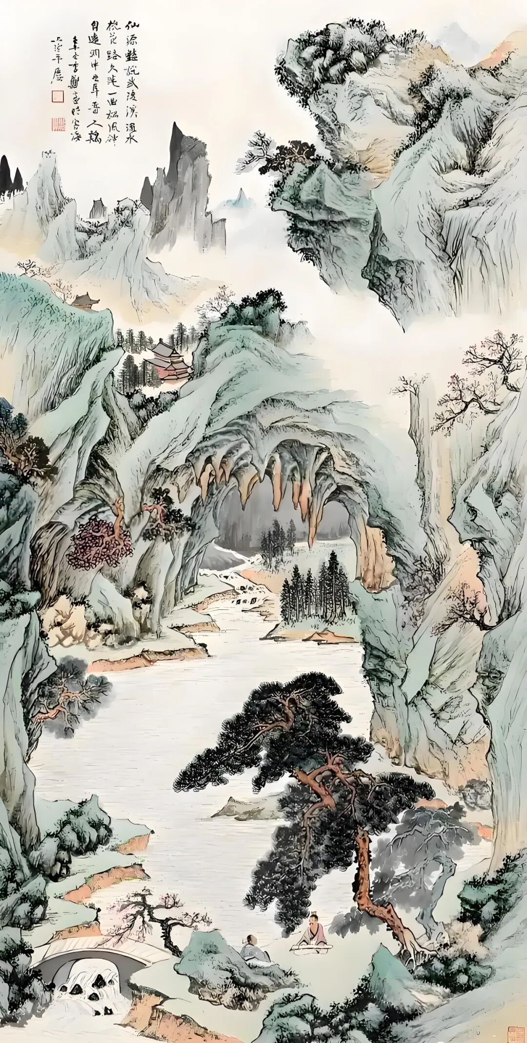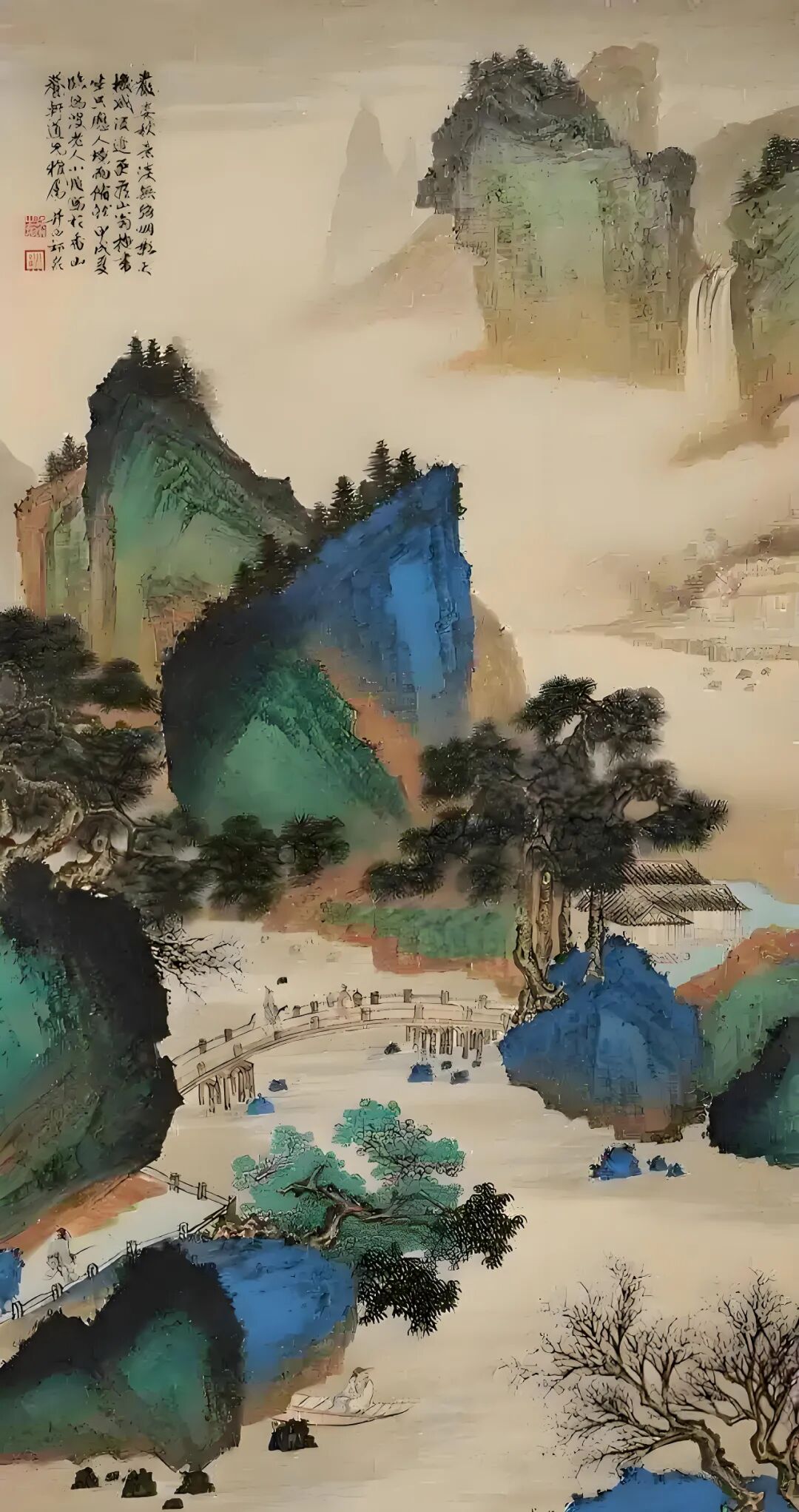 径绕流溪,篁幽小院。春光万里晴空远,田畴秀麦绿无边。农夫种播登丰盼。