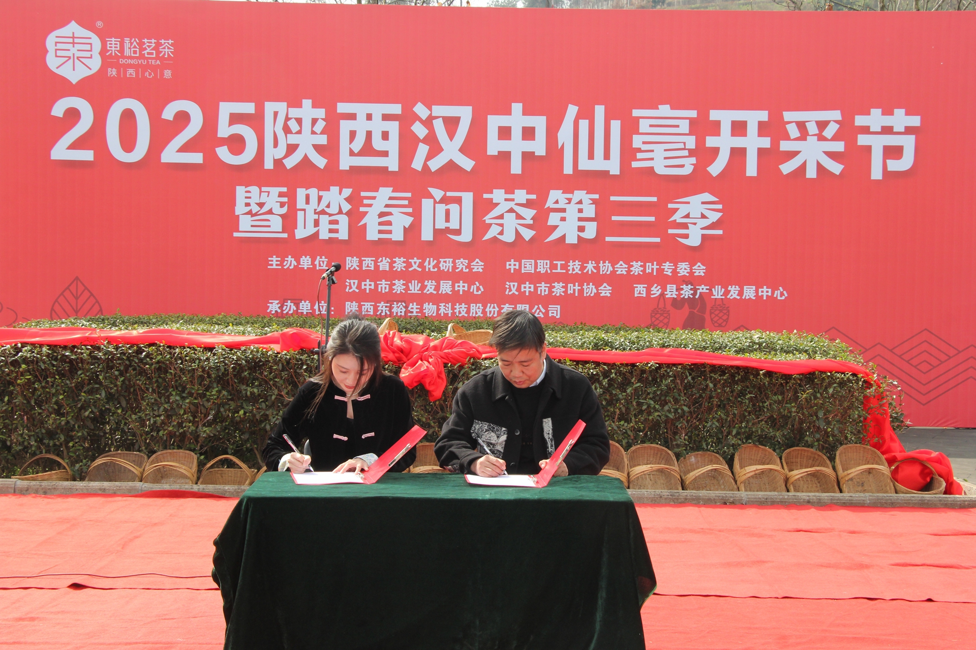 活动现场,东裕茗茶与经销商签订了100万元的春茶销售协议,陕西省茶文化研究会、中国职工技术协会茶叶专业委员会联合开展的“寻找最美制茶师”短视频展播活动同步启动。
