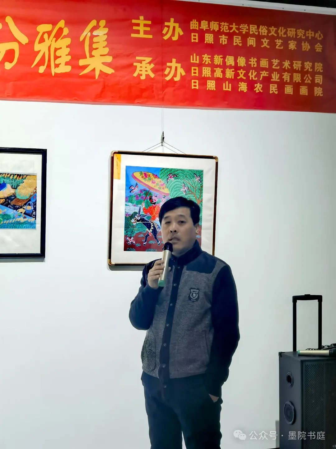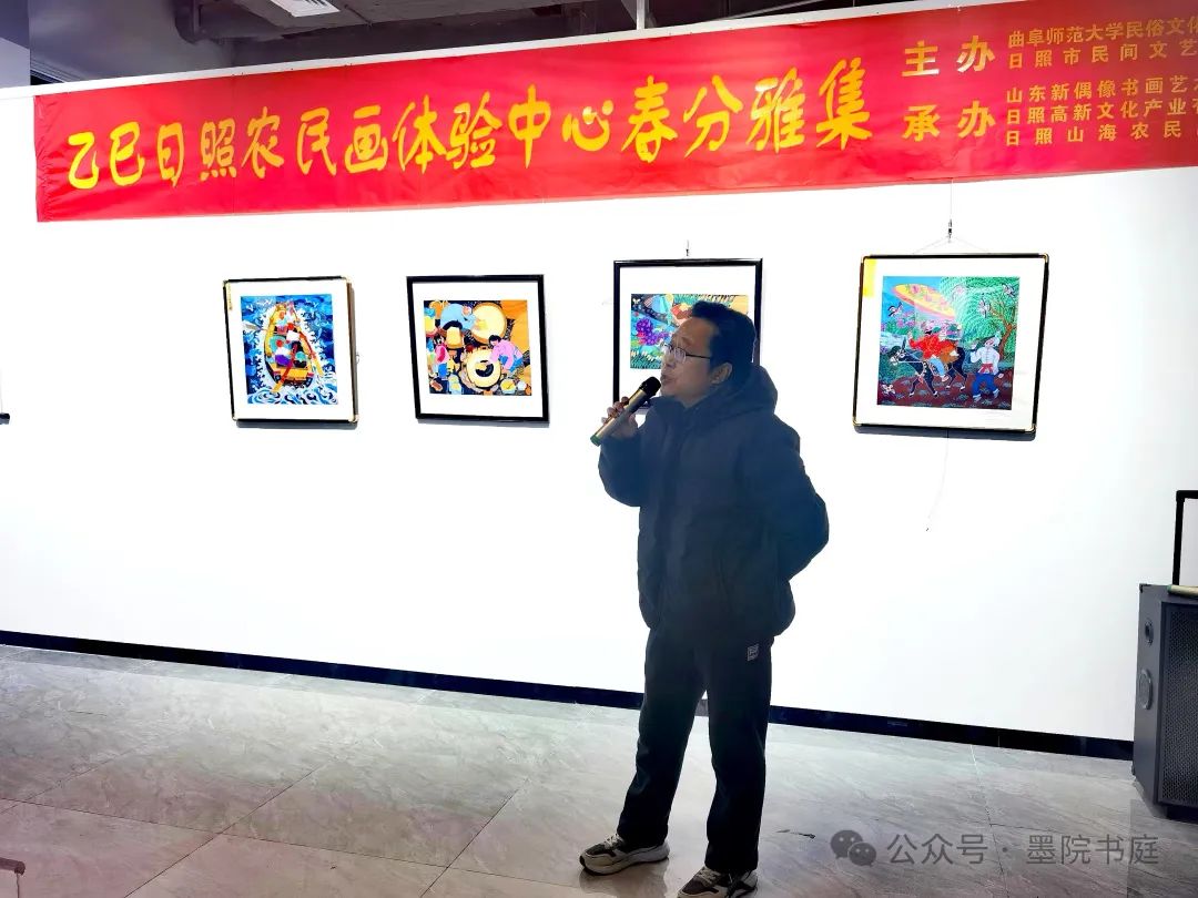 由曲阜师范大学民俗文化研究中心、日照市民间文艺家协会主办,山东新偶像书画艺术研究院、日照市高新文化产业有限公司、日照山海农民画画院承办的“乙巳·春分诗书画雅集”在日照高新技术开发区文化体育中心举行。曲阜师范大学民俗文化研究中心副主任苗红磊教授,日照市文联委员、山东新偶像书画艺术研究院执行院长周英俊教授,日照市文联委员、日照市民间文艺家协会常务副主席樊敦文先生、日照高新文化产业有限公司董事长王传森先生,日照山海农民画画院院长乔诺女士以及薛德宽、宋金鼎、林维欣、张佃新、高秀平、牟敦迎、丁元君、刘峰、周立敏、郑桂芝、匡立芳、薛敏等十八位知名诗人、词人、画家、书法家出席了雅集。