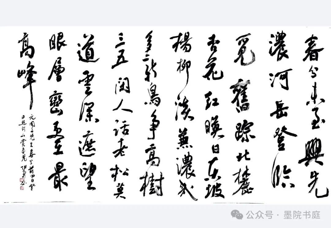 赏析:这首作品描绘了乙巳春分前三日日照高新区诗书画雅集的盛景,通过“丹青妙笔”、“翰墨飘香”等意象展现了艺术的魅力。诗中“诗韵雅,画情融”表达了诗画合一的意境,而“挥毫泼墨展雄风”则彰显了艺术家们的豪情壮志。充分展现了雅集的氛围和艺术的韵味。