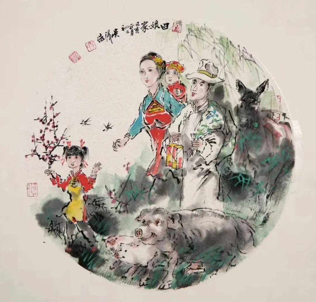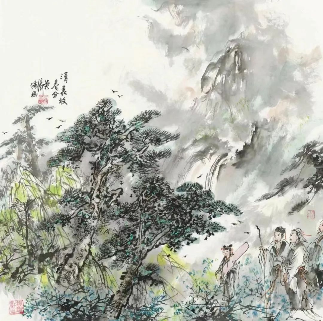 在绘画中,他巧妙运用色彩,既有传统水墨的淡雅,也有现代色彩的鲜明对比。