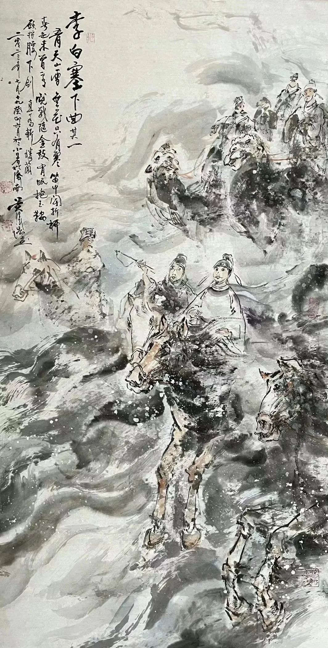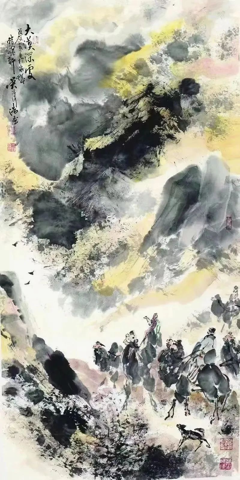 他还创作了一系列大专题作品,如《弘一禅意》、《武训歌谣》、《写意敦煌》、《苏子东坡》、《孔子礼赞》、《元曲录魂》、《济南文脉》等,这些作品不仅展示了其多样的艺术才华,也体现了其深厚的文化修养。