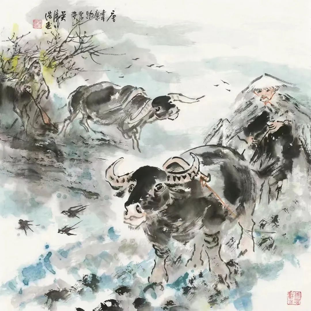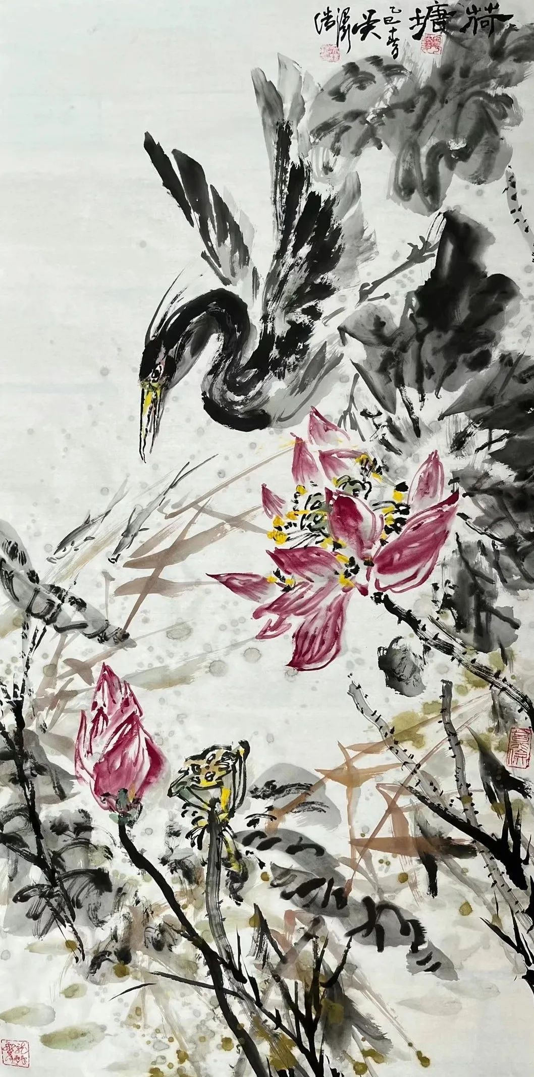 从山水、花鸟到人物,吴泽浩的作品题材丰富,展现了其多方面的艺术才华。