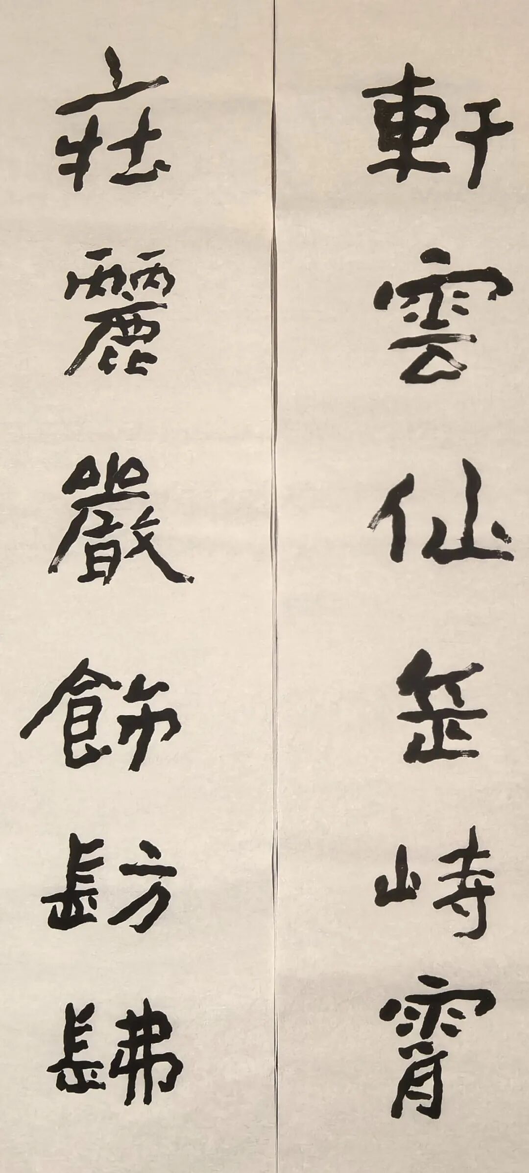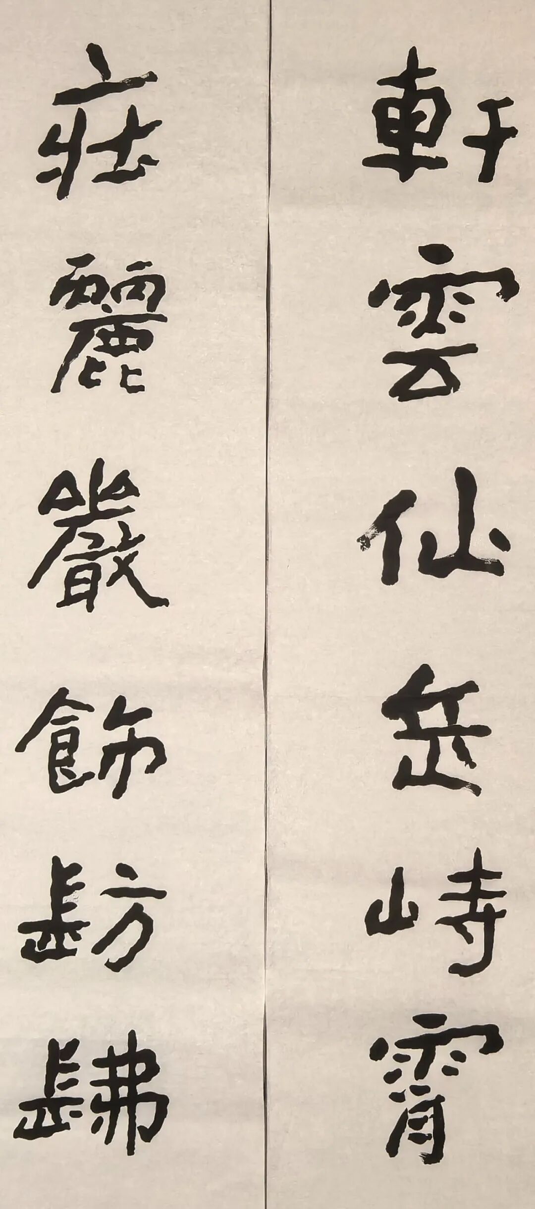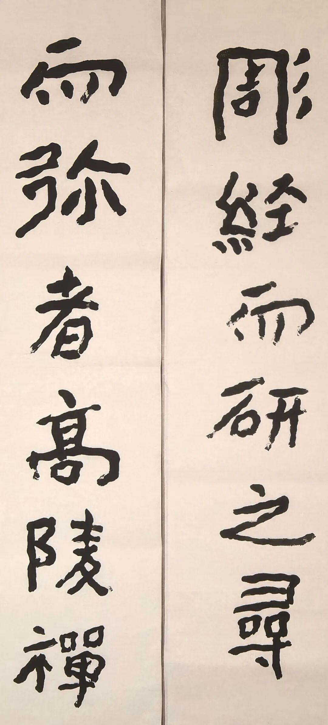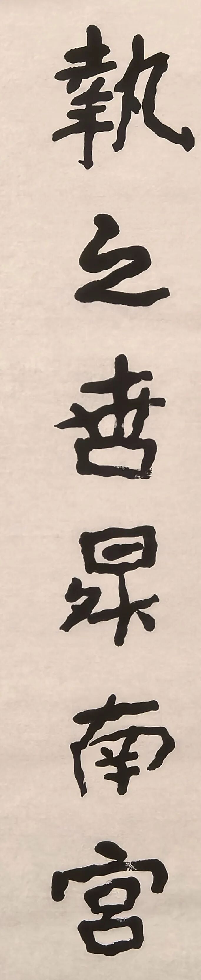 在技法层面,金熙长的临作展现了令人惊叹的转化能力。他并非简单复制原碑的刀刻效果,而是通过毛笔再现"刀意",将石刻的凌厉转化为笔墨的韵律。那些看似随意的大小斜正、方圆藏露的变化,在他的笔下获得了新的生命。特别是对"方正中求峻峭"的理解,金熙长通过运笔的轻重缓急,完美呈现了原碑在规矩中求险绝的艺术追求。